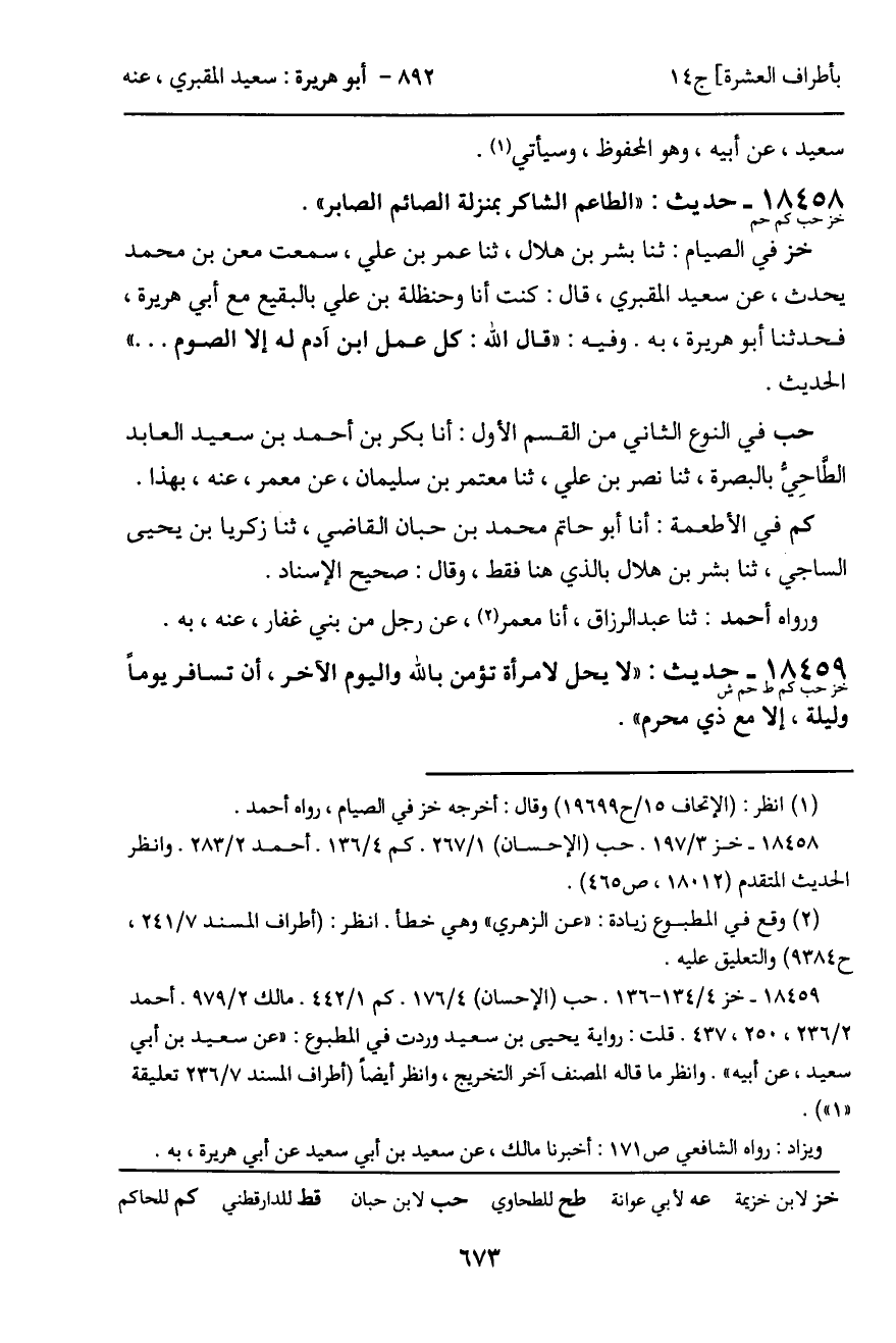 حب في الحادي والسبعين من الثاني: أنا عمر بن سعيد بن سنان، أنا أحمد بن أبي بكر، عن مالك، به. وعن أحمد بن علي بن المثنى، ثنا إبراهيم بن الحجاج، ثنا حماد بن سلمة، عن سهيل، به.