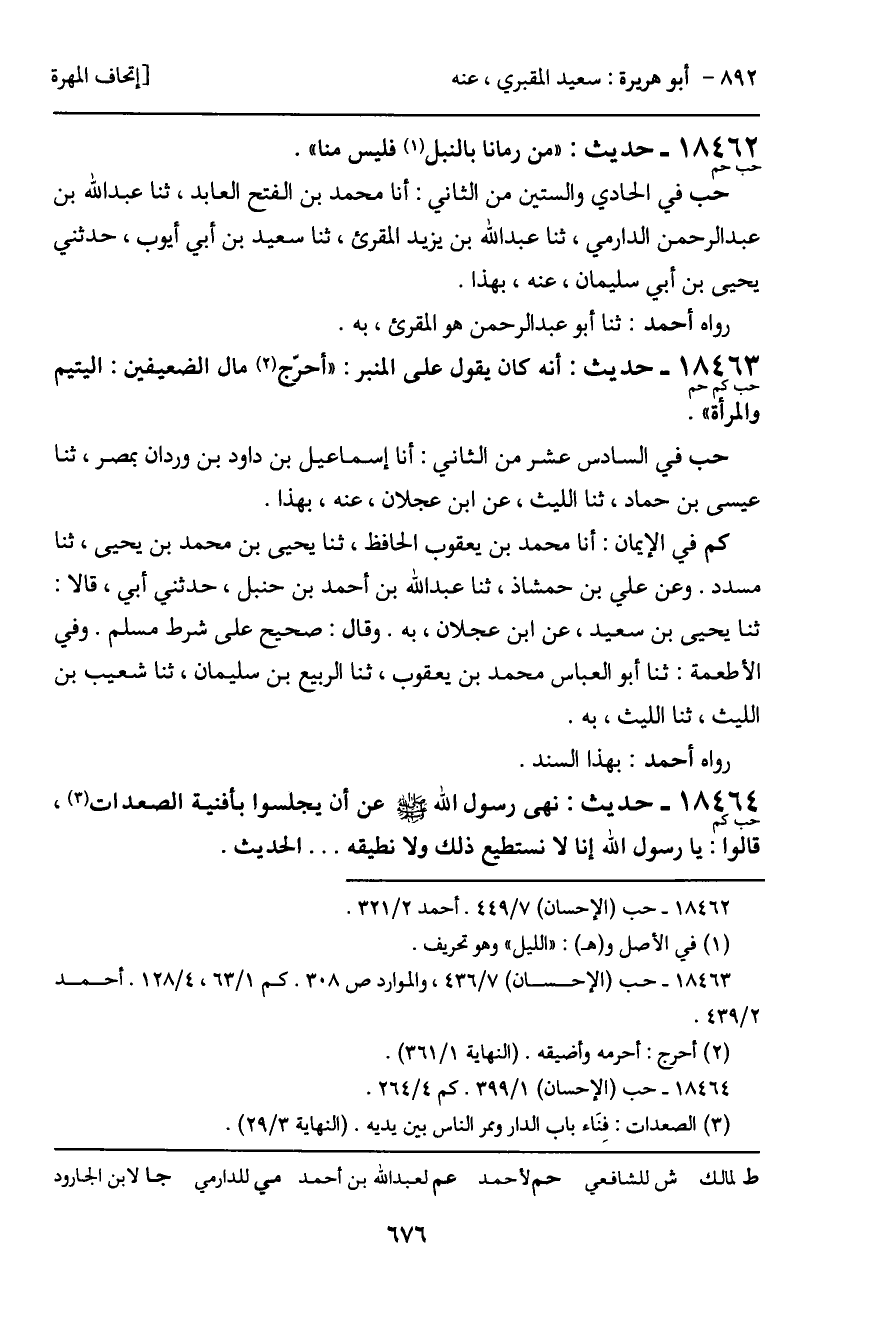 حب في الحادي والستين من الثاني: أنا محمد بن الفتح العابد، ثنا عبد الله بن عبد الرحمن الدارمي، ثنا عبد الله بن يزيد المقرئ، ثنا سعيد بن أبي أيوب، حدثني يحيى بن أبي سليمان، عنه، بهذا.