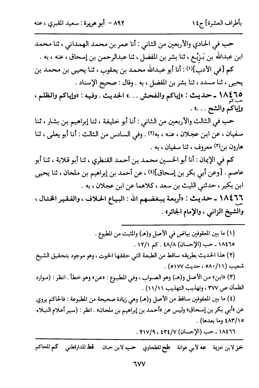 18466 - حديث (حب) : "أربعة يبغضهم الله: البياع الحلاف، والفقير المختال، والشيخ الزاني، والإمام الجائر".