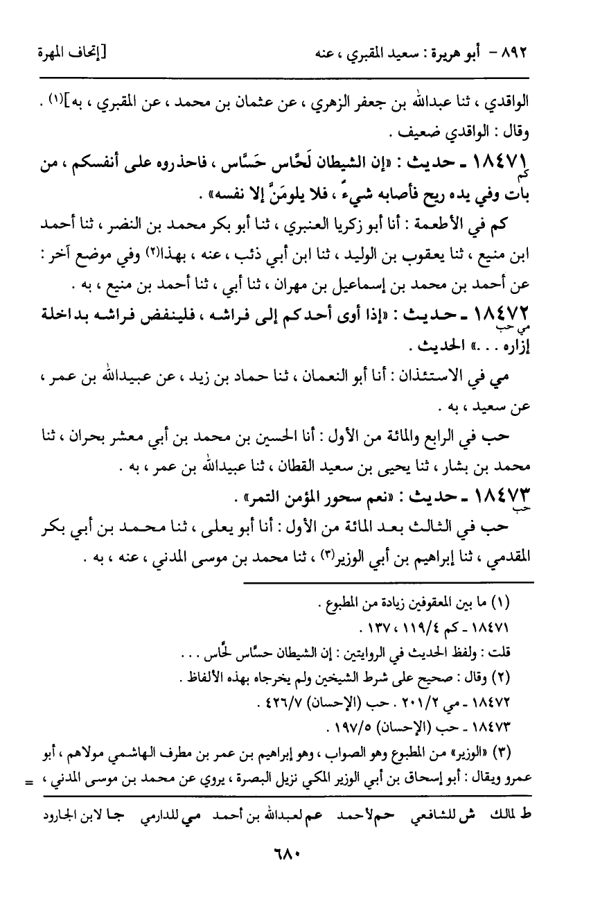 كم في الأطعمة: أنا أبو زكريا العنبري، ثنا أبو بكر محمد بن النضر، ثنا أحمد ابن منيع، ثنا يعقوب بن الوليد، ثنا ابن أبي ذئب، عنه، بهذا وفي موضع آخر: عن أحمد بن محمد بن إسماعيل بن مهران، ثنا أبي، ثنا أحمد بن منيع، به.