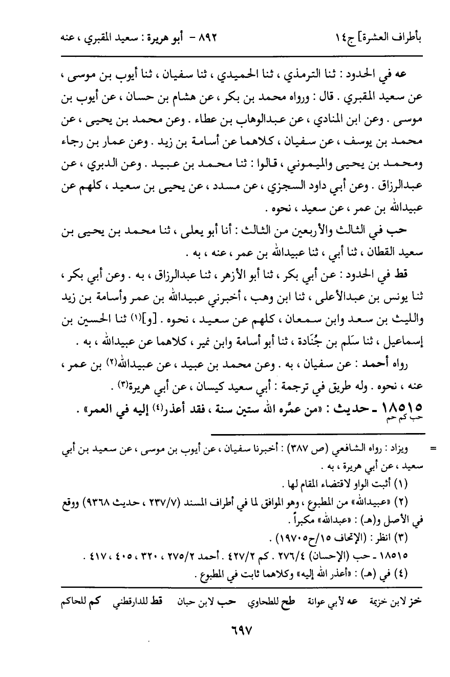 18515 - حديث (حب كم حم) : "من عمره الله ستين سنة، فقد أعذر إليه في العمر".