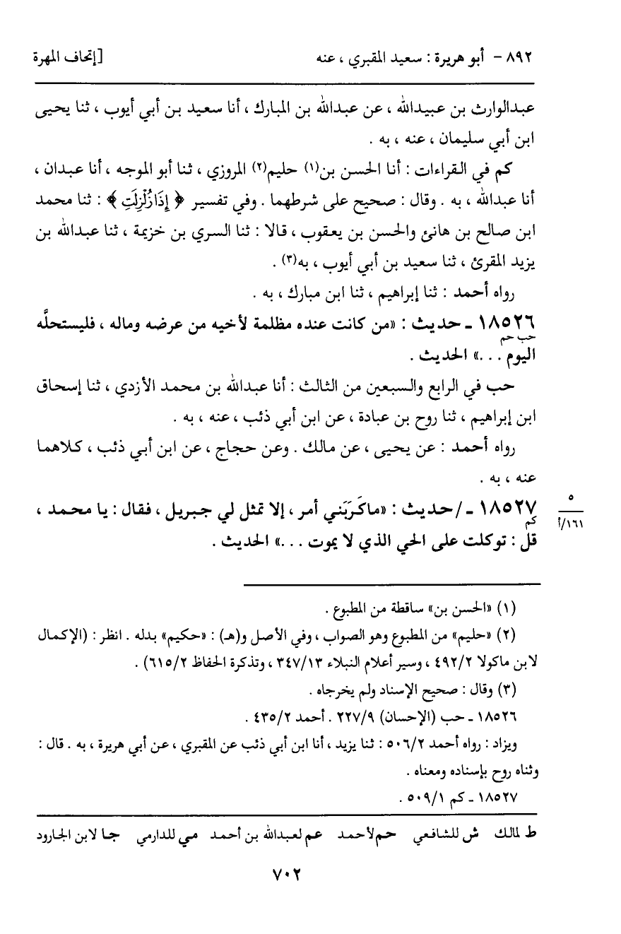 18526 - حديث (حب حم) : "من كانت عنده مظلمة لأخيه من عرضه وماله، فليستحله اليوم ... " الحديث.