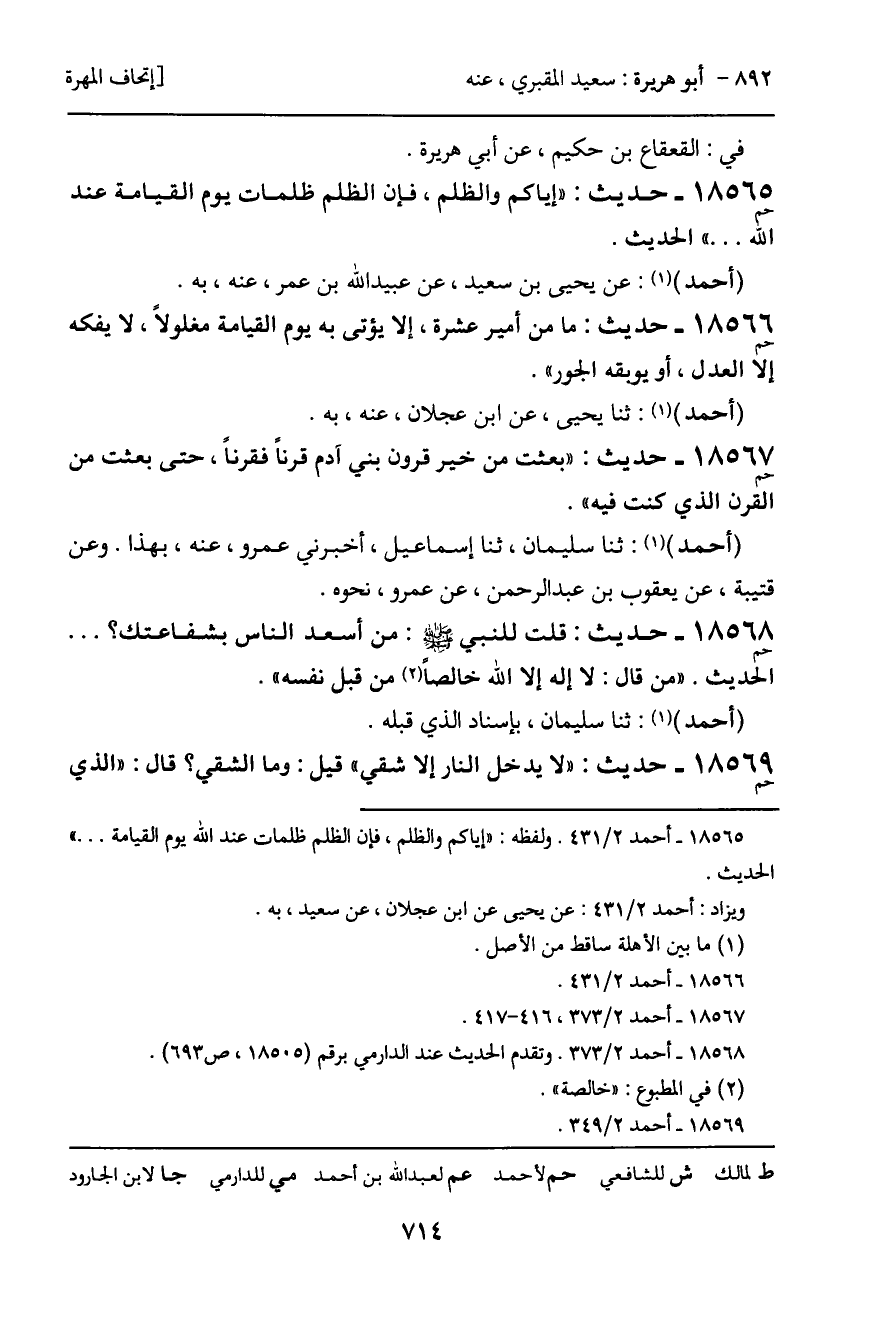 18568 - حديث (حم) : قلت للنبي - صَلَّى اللَّهُ عَلَيْهِ وَسَلَّمَ -: من أسعد الناس بشفاعتك؟ ... الحديث. "من قال: لا إله إلا الله خالصاً من قبل نفسه".