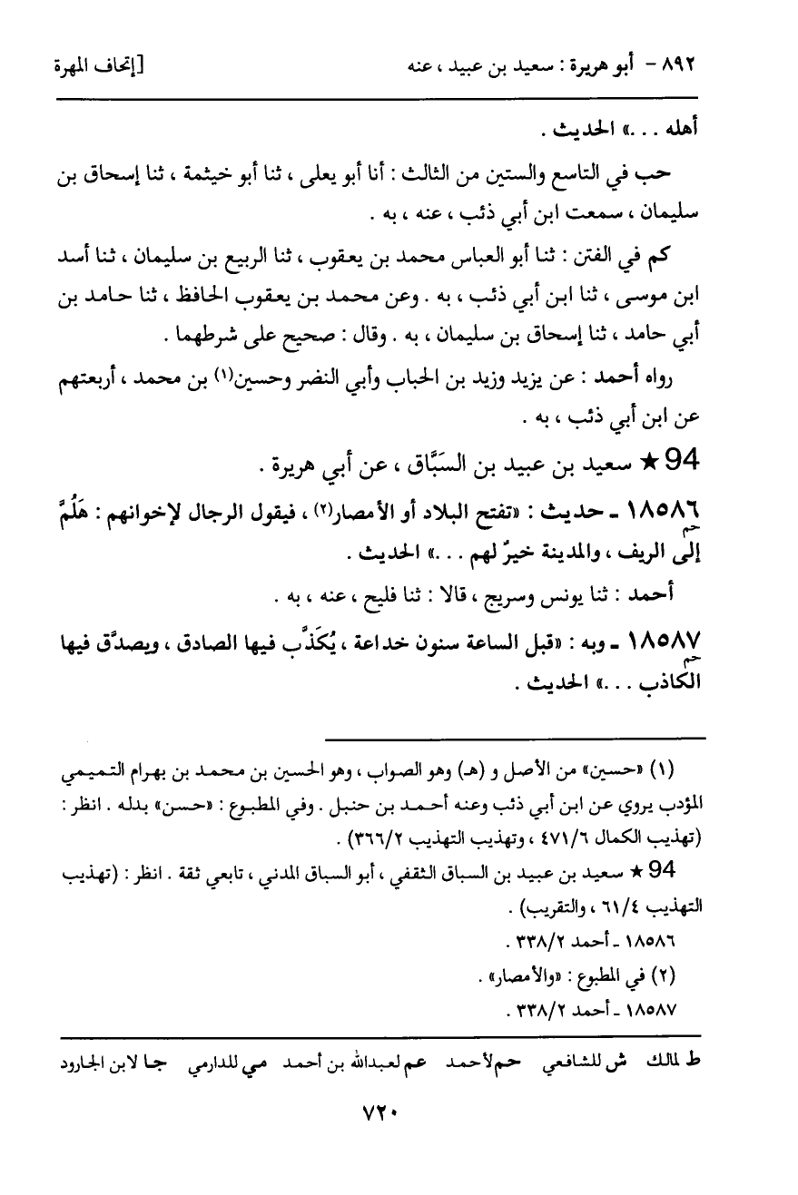 18587 - وبه (حم) : "قبل الساعة سنون خداعة، يكَذب فيها الصادق، ويصدق فيها الكاذب ... " الحديث.