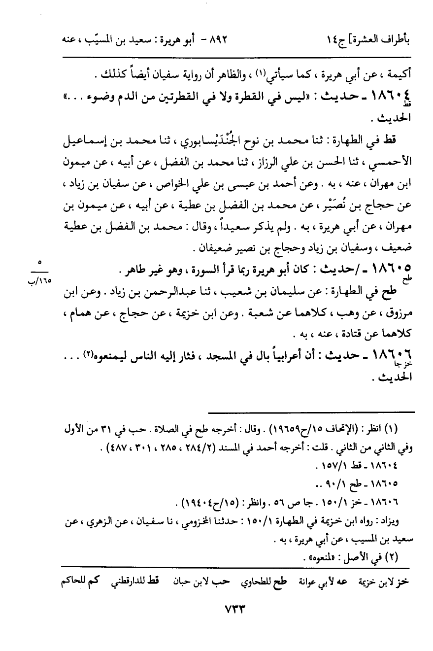 -[734]- خز في الطهارة: عن عبد الجبار، عن سفيان بن عيينة. وعن الفضل بن يعقوب الجزري، عن إبراهيم بن صدقة، عن سفيان بن حسين، كلاهما عن الزهري، عنه، به.