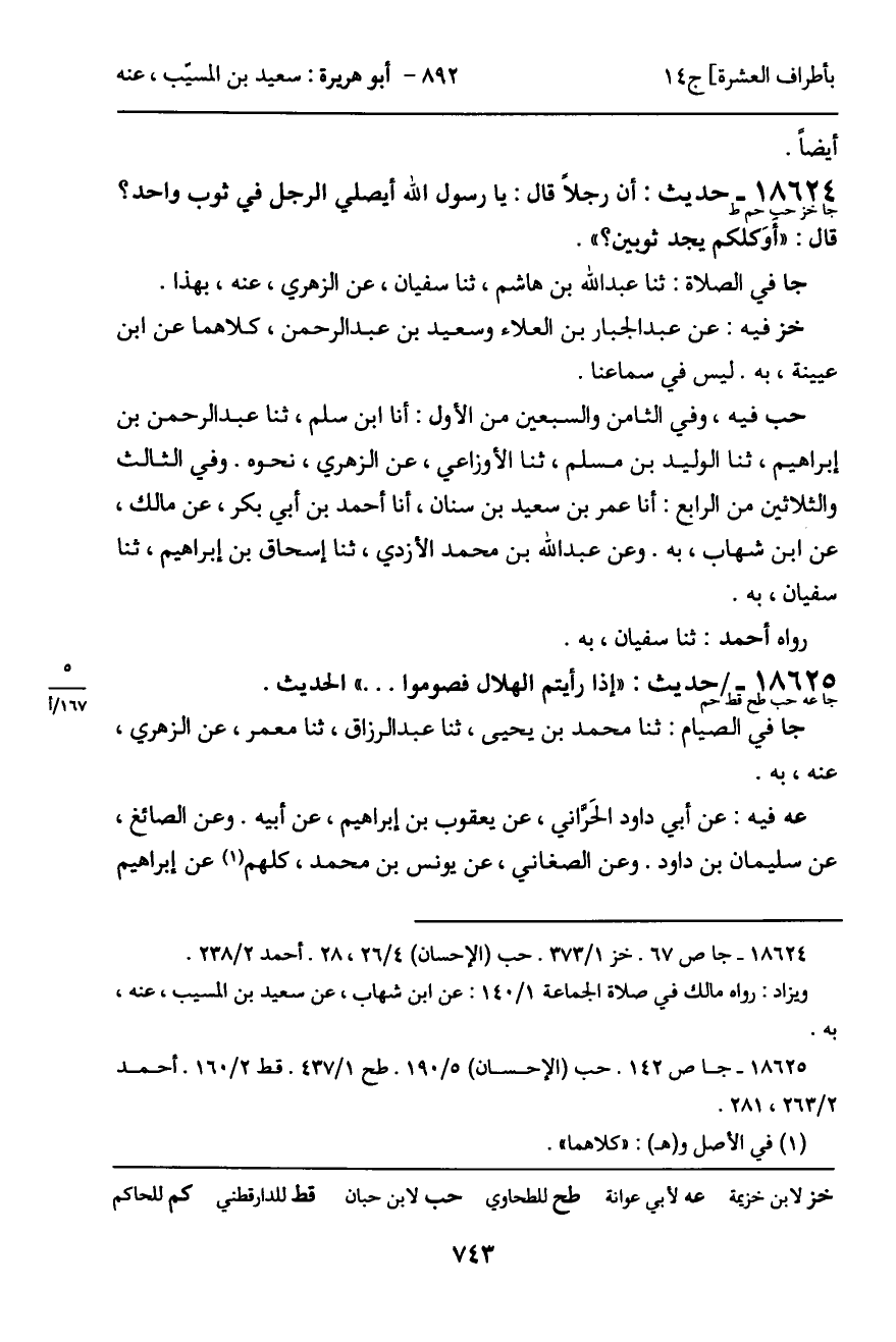 18625 - حديث (جا عه حب طح قط حم) : "إذا رأيتم الهلال فصوموا ... " الحديث.