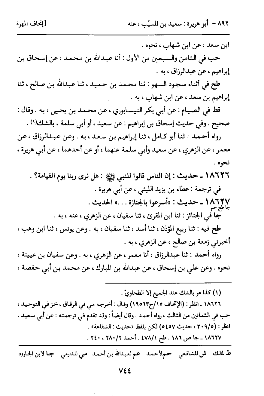 رواه أحمد: ثنا عبد الرزاق، أنا معمر، عن الزهري، به. وعن سفيان بن عيينة، نحوه. وعن علي بن إسحاق، عن عبد الله بن المبارك، عن محمد بن أبي حفصة،