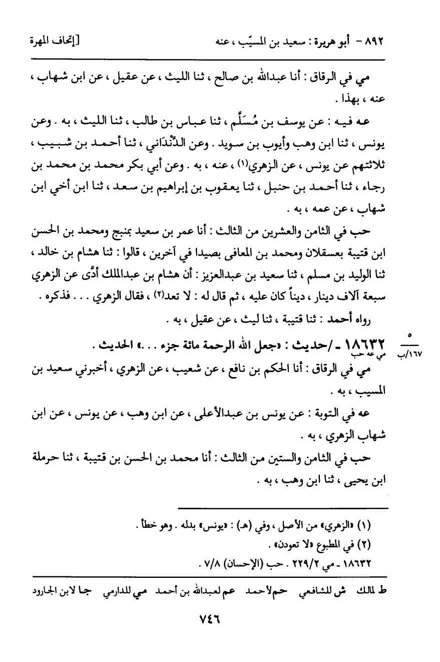حب في الثامن والستين من الثالث: أنا محمد بن الحسن بن قتيبة، ثنا حرملة ابن يحيى، ثنا ابن وهب، به.