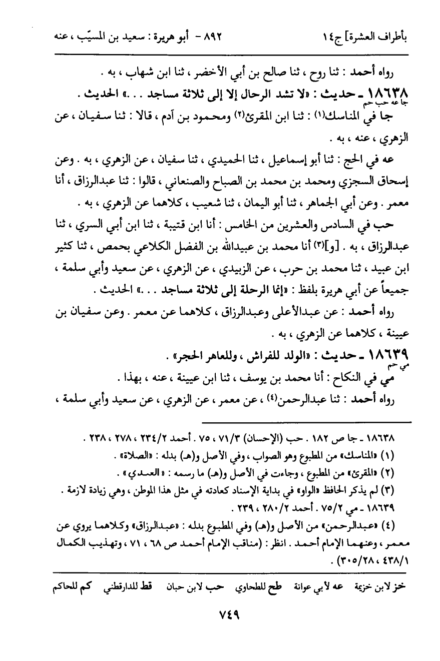 18638 - حديث (جا عه حب حم) : "لا تشد الرحال إلا إلى ثلاثة مساجد ... " الحديث.
