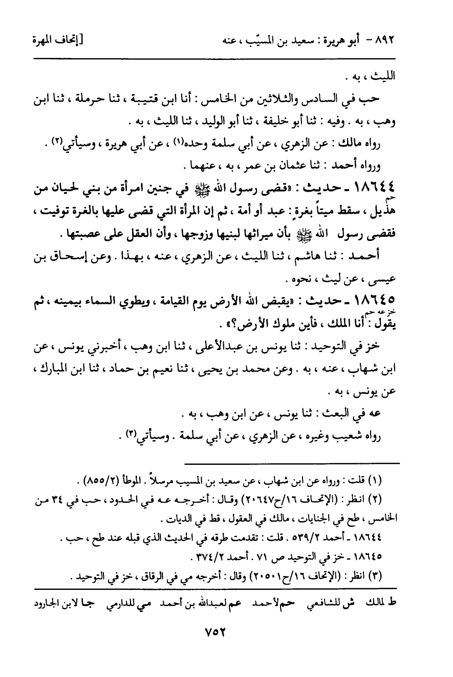 خز في التوحيد: ثنا يونس بن عبد الأعلى، ثنا ابن وهب، أخبرني يونس، عن ابن شهاب، عنه، به. وعن محمد بن يحيى، ثنا نعيم بن حماد، ثنا ابن المبارك، عن يونس، به.