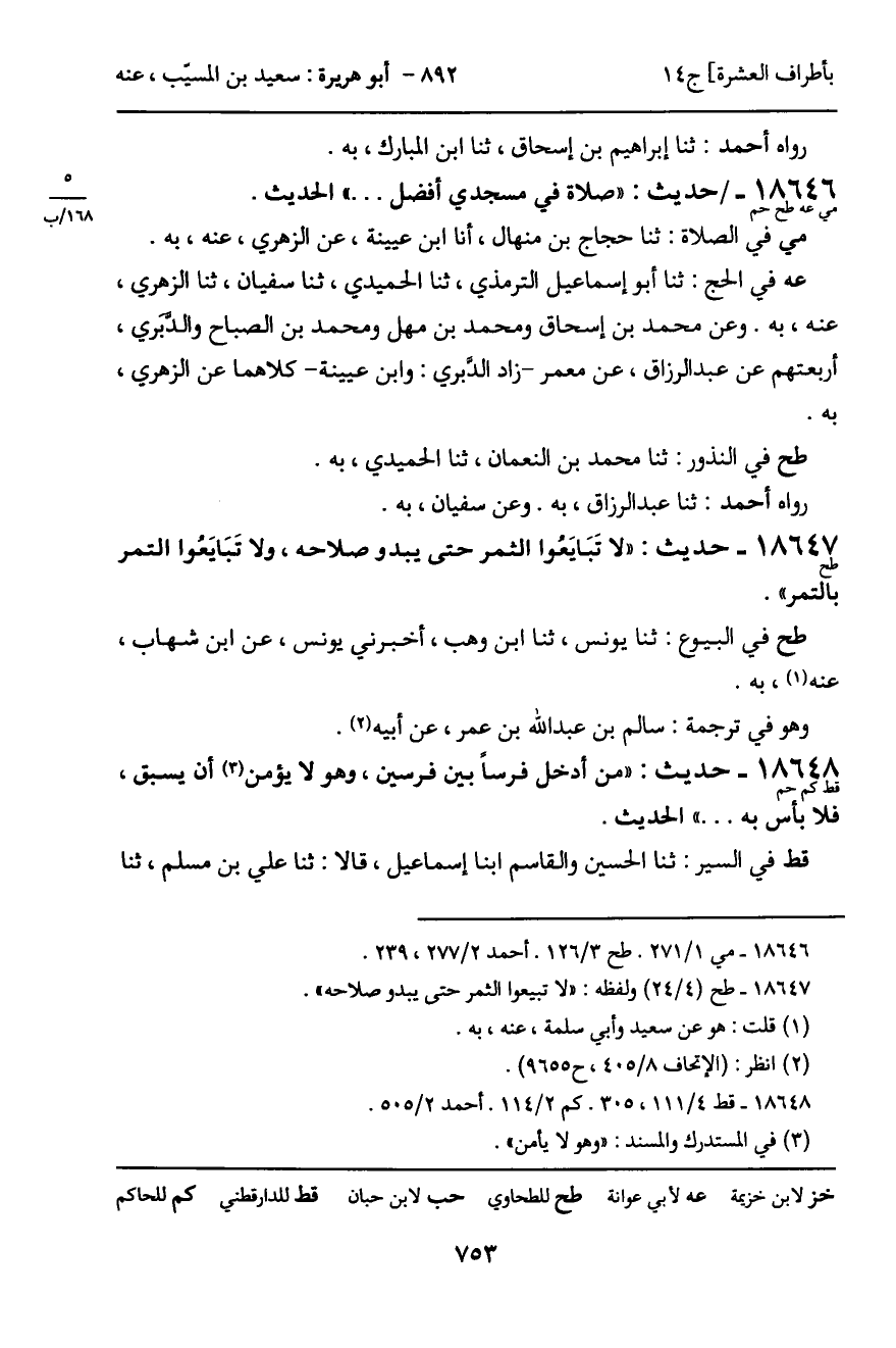 18647 - حديث (طح) : "لا تَبَايَعوا الثمر حتى يبدو صلاحه، ولا تَبَايَعوا التمر بالتمر".