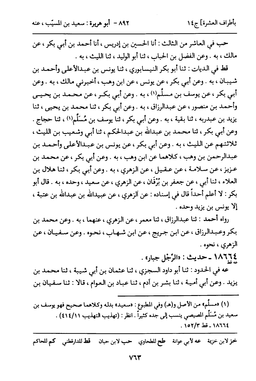 -[764]- حسين، عن الزهري، عنه، به. وقال: لم يقل أحد غيره، يعني سفيان تفرد به عن الزهري.