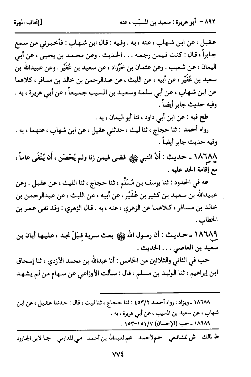 عه في الحدود: ثنا يوسف بن مسلم، ثنا حجاج، ثنا الليث، عن عقيل. وعن عبيد الله بن سعيد بن كثير بن عفَيْر، عن أبيه، عن الليث، عن عبد الرحمن بن خالد بن مسافر، كلاهما عن الزهري، عنه، به. قال الزهري: وقد نفى عمر بن الخطاب.