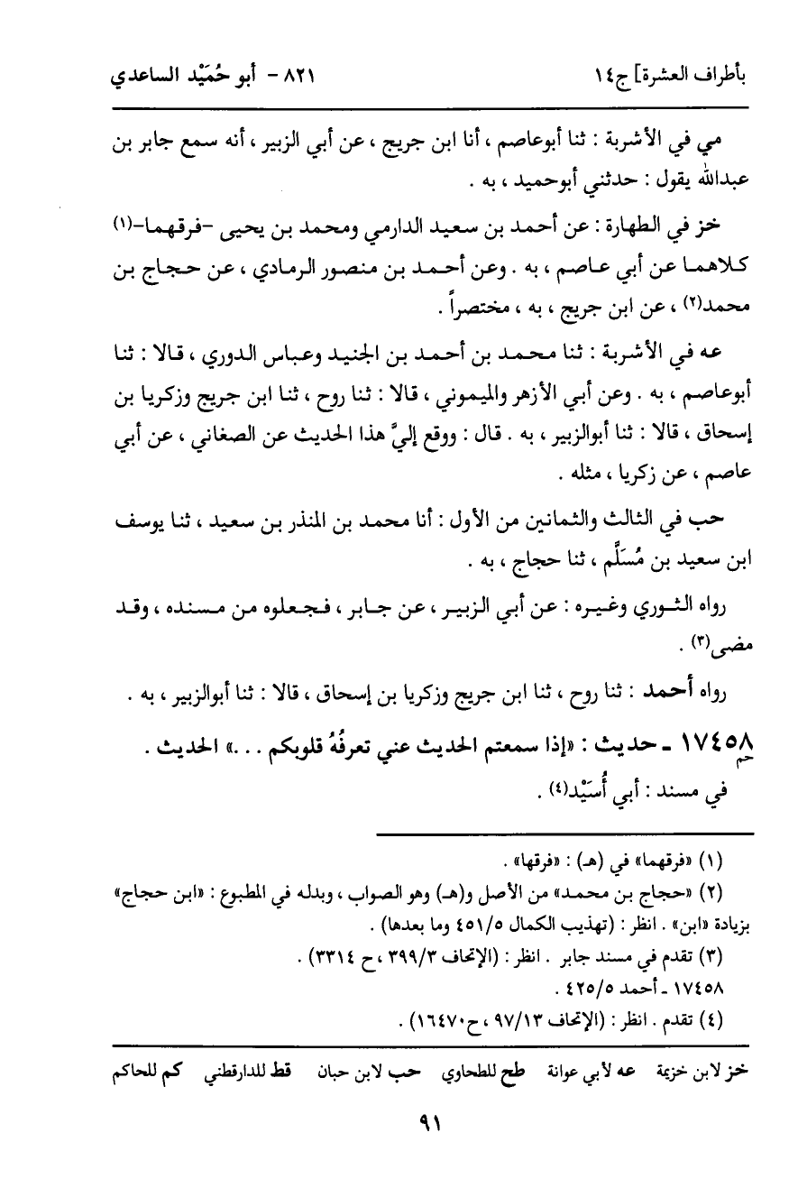 17458 - حديث (حم) : "إذا سمعتم الحديث عني تعرفُهُ قلوبكم ... " الحديث. في مسند: أبي أسَيْد.
