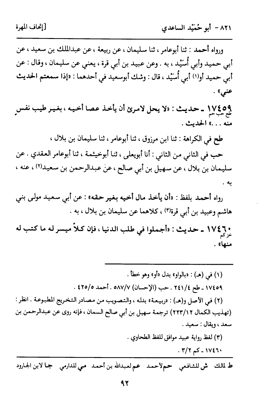 رواه أحمد بلفظ: "أن يأخذ مال أخيه بغير حقه": عن أبي سعيد مولى بني هاشم وعبيد بن أبي قرة، كلاهما عن سليمان بن بلال، به.