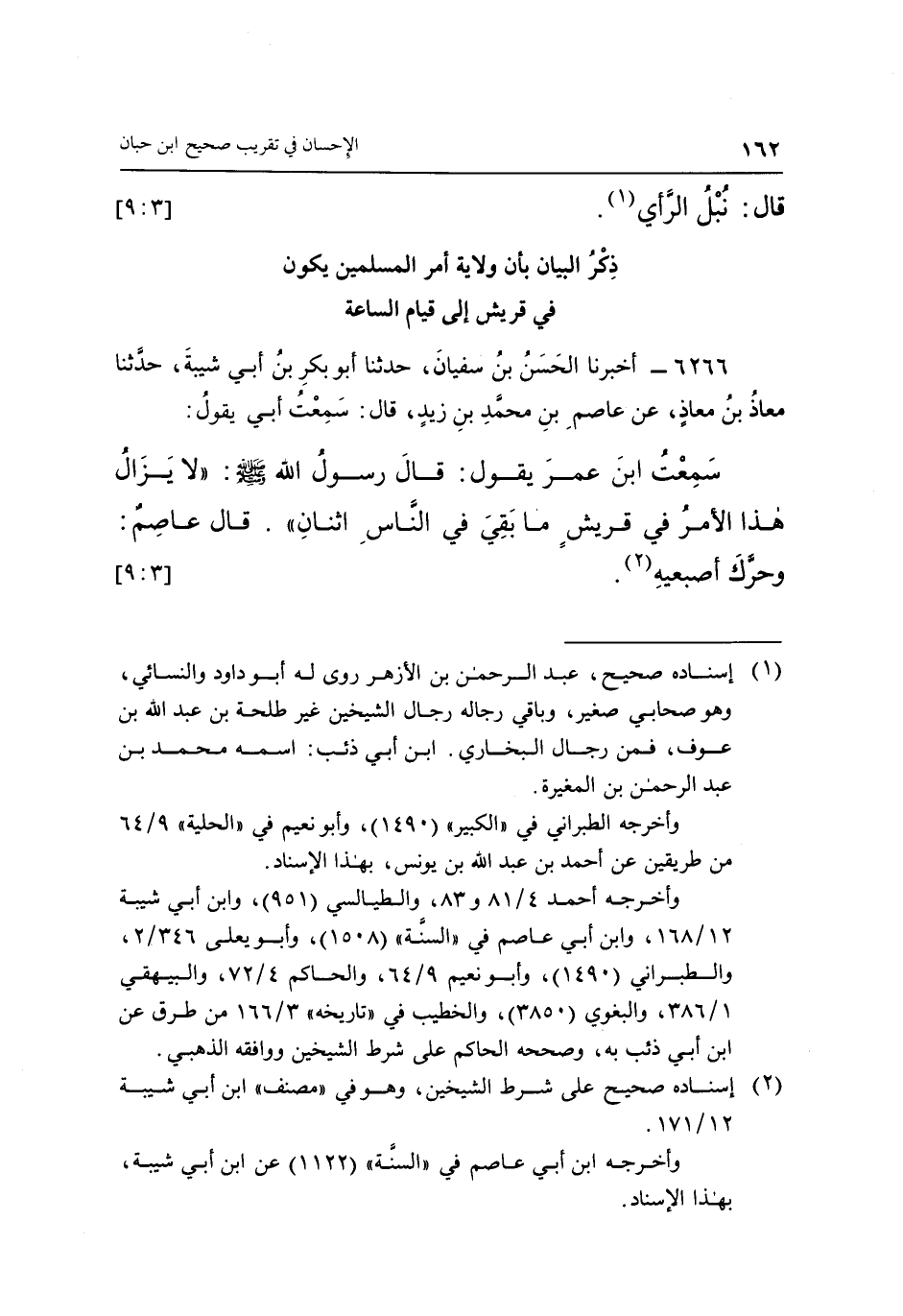 ذِكْرُ الْبَيَانِ بِأَنَّ وِلَايَةَ أَمْرِ الْمُسْلِمِينَ يَكُونَ فِي قُرَيْشٍ إِلَى قِيَامِ السَّاعَةِ
