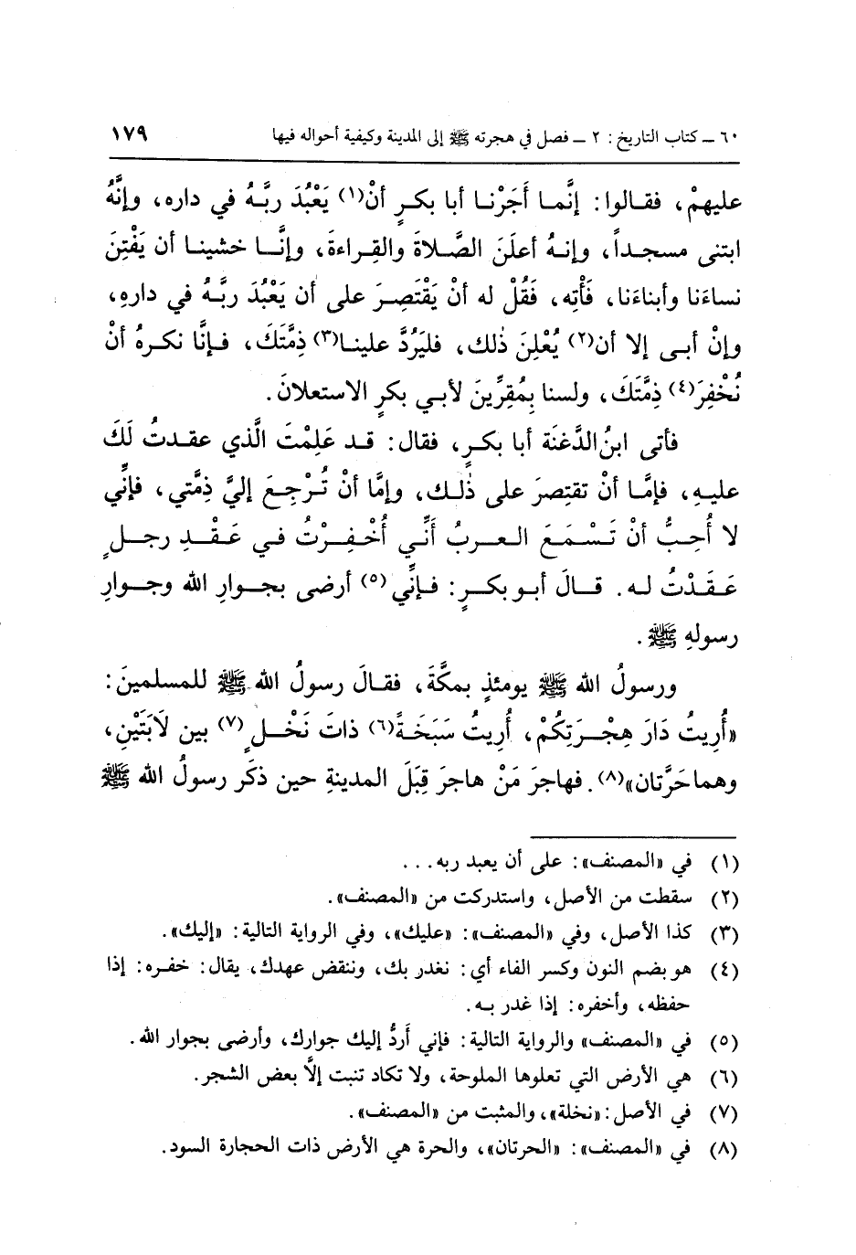 وَرَسُولُ اللَّهِ صَلَّى اللَّهُ عَلَيْهِ وَسَلَّمَ يَوْمَئِذٍ بِمَكَّةَ، فَقَالَ رَسُولُ اللَّهِ صَلَّى اللَّهُ عَلَيْهِ وَسَلَّمَ لِلْمُسْلِمِينَ: «أُرِيتُ دَارَ هِجْرَتِكُمْ، أُرِيتُ سَبَخَةً (6) ذَاتَ نَخْلٍ (7) بَيْنَ لَابَتَيْنِ، وَهُمَا حَرَّتَانِ» (8) .