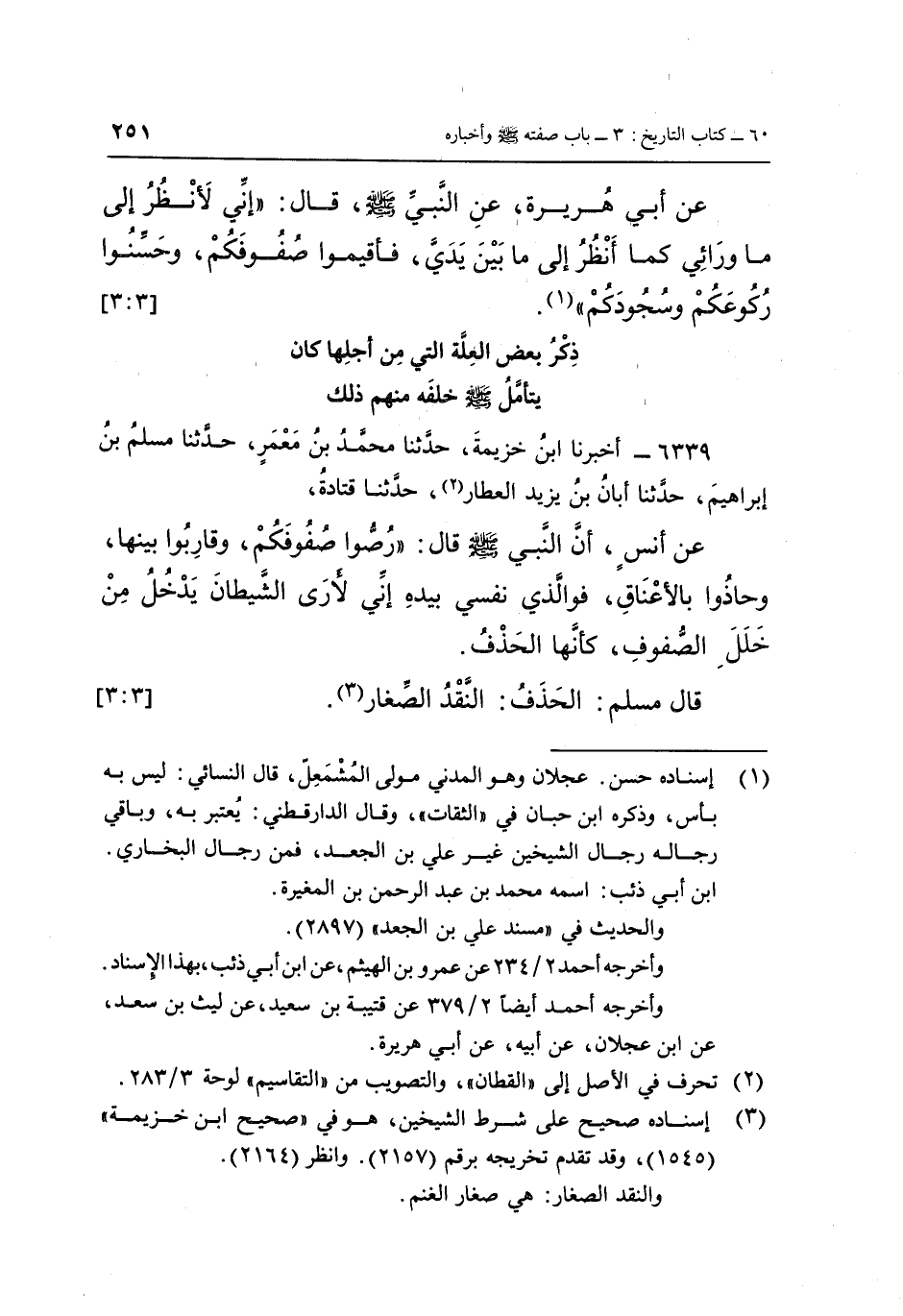 عَنْ أَبِي هُرَيْرَةَ، عَنِ النَّبِيِّ صَلَّى اللَّهُ عَلَيْهِ وَسَلَّمَ قَالَ: «إِنِّي لَأَنْظُرُ إِلَى مَا وَرَائِي كَمَا أَنْظُرُ إِلَى مَا بَيْنَ يَدَيَّ، فَأَقِيمُوا صُفُوفَكُمْ، وَحَسِّنُوا رُكُوعَكُمْ وَسُجُودَكُمْ» (1) . [3: 3]