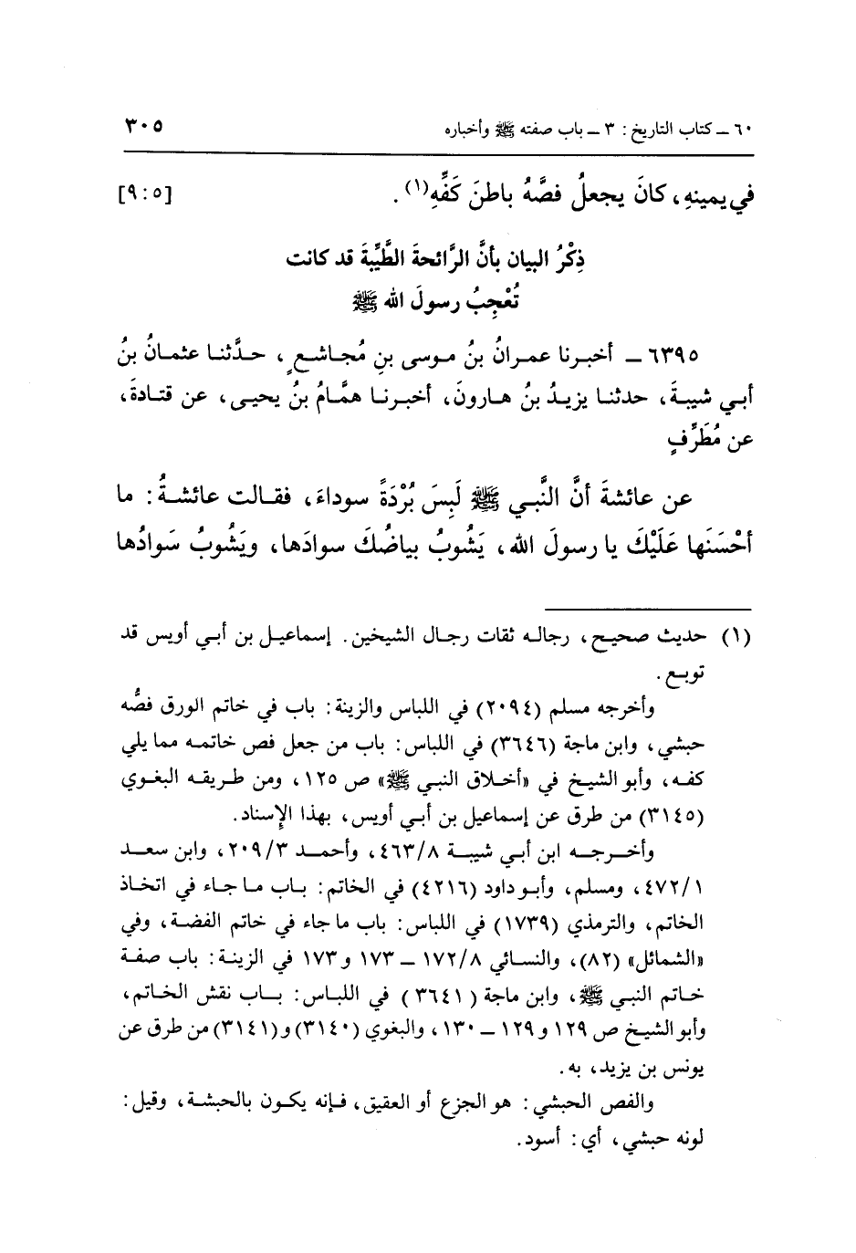 فِي يَمِينِهِ، كَانَ يَجْعَلُ فَصَّهُ بَاطِنَ كَفِّهِ» (1) . [5: 9]