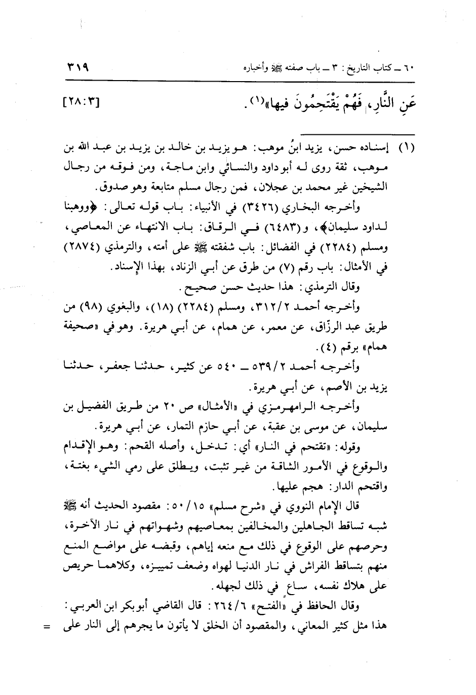 وقال الحافظ في " الفتح " 6/264: قال القاضي أبو بكر ابن العربي: هذا مثل كثير المعاني، والمقصود أن الخلق لا يأتون ما يجرهم إلى النار على =