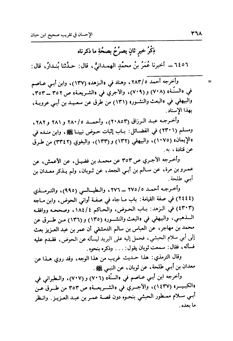 6456 - أَخْبَرَنَا عُمَرُ بْنُ مُحَمَّدٍ الْهَمْدَانِيُّ، قَالَ: حَدَّثَنَا بُنْدَارٌ، قَالَ: