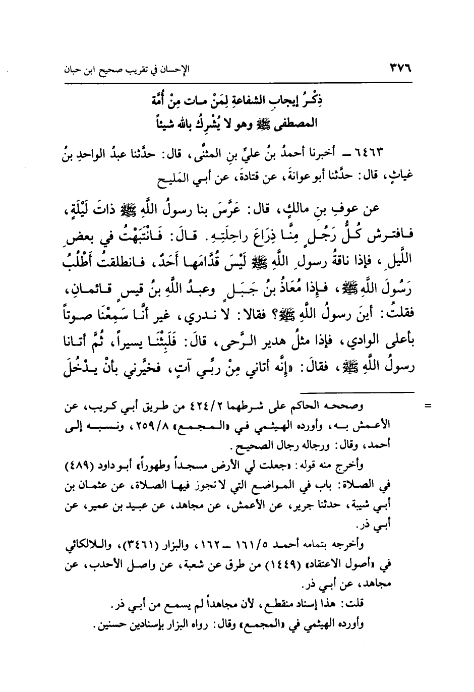 ذِكْرُ إِيجَابِ الشَّفَاعَةِ لِمَنْ مَاتَ مِنْ أُمَّةِ الْمُصْطَفَى صَلَّى اللَّهُ عَلَيْهِ وَسَلَّمَ وَهُوَ لَا يُشْرِكُ بِاللَّهِ شَيْئًا