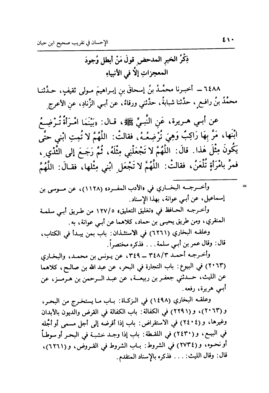 ذِكْرُ الْخَبَرِ الْمُدْحِضِ قَوْلَ مَنْ أَبْطَلَ وُجُودَ الْمُعْجِزَاتِ إِلَّا فِي الْأَنْبِيَاءِ