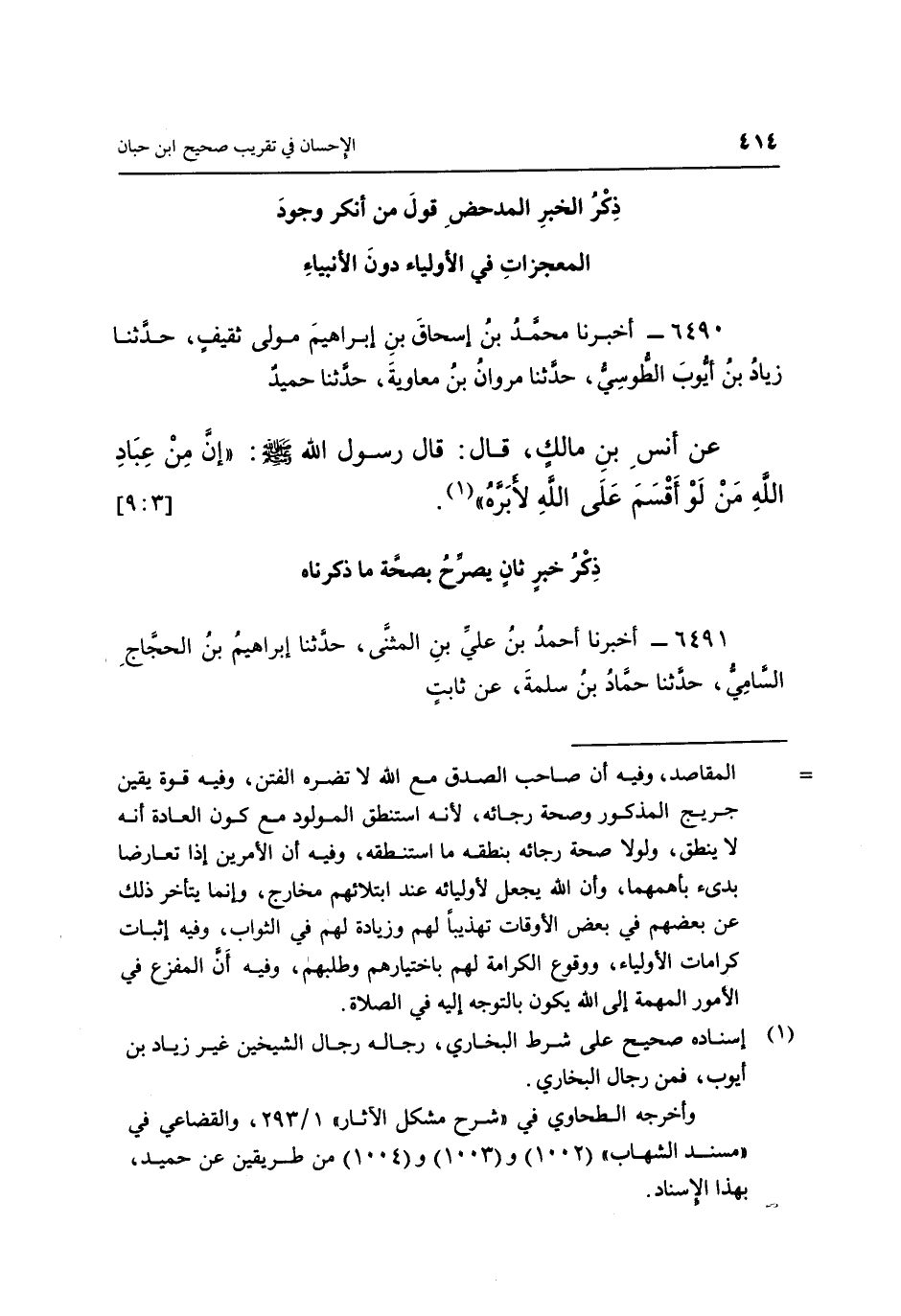 ذِكْرُ الْخَبَرِ الْمُدْحِضِ قَوْلَ مَنْ أَنْكَرَ وُجُودَ الْمُعْجِزَاتِ فِي الْأَوْلِيَاءِ دُونَ الْأَنْبِيَاءِ