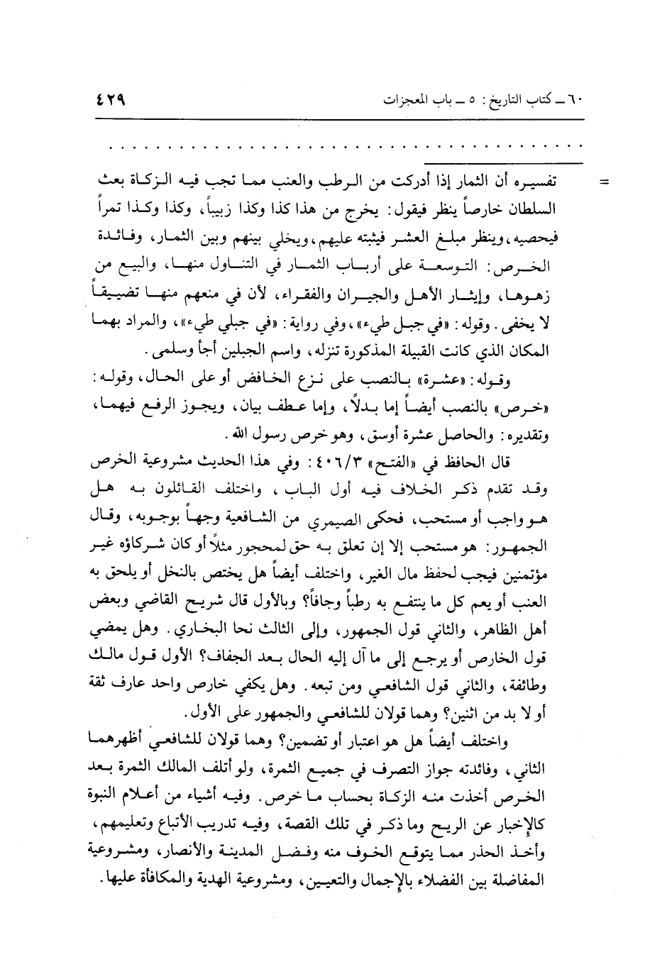 قال الحافظ في "الفتح" 3/406: وفي هذا الحديث مشروعية الخرص وقد تقدم ذكر الخلاف فيه أول الباب، واختلف القائلون به هل هو واجب أو مستحب، فحكى الصميري من الشافعية وجهاً بوجوبه، وقال الجمهور: هو مستحب إلا إن تعلق به حق لمحجور مثلاً أو كان شركاؤه غير مؤتمنين فيجب لحفظ مال الغير، واختلف أيضاً هل يختص بالنخل أو يلحق به العنب أو يعم كل ما ينتفع به رطباً وجافاً؟ وبالأول قال شريح القاضي وبعض أهل الظاهر، والثاني قول الجمهور، وإلى الثالث نحا البخاري. وهل يمضي قول الخارص أو يرجع إلى ما آل إليه الحال بعد الجفاف؟ الأول قول مالك وطائفة، والثاني قول الشافعي ومن تبعه. وهل يكفي خارص واحد عارف ثقة أو لا بد من اثنين؟ وهما قولان للشافعي والجمهور على الأول.