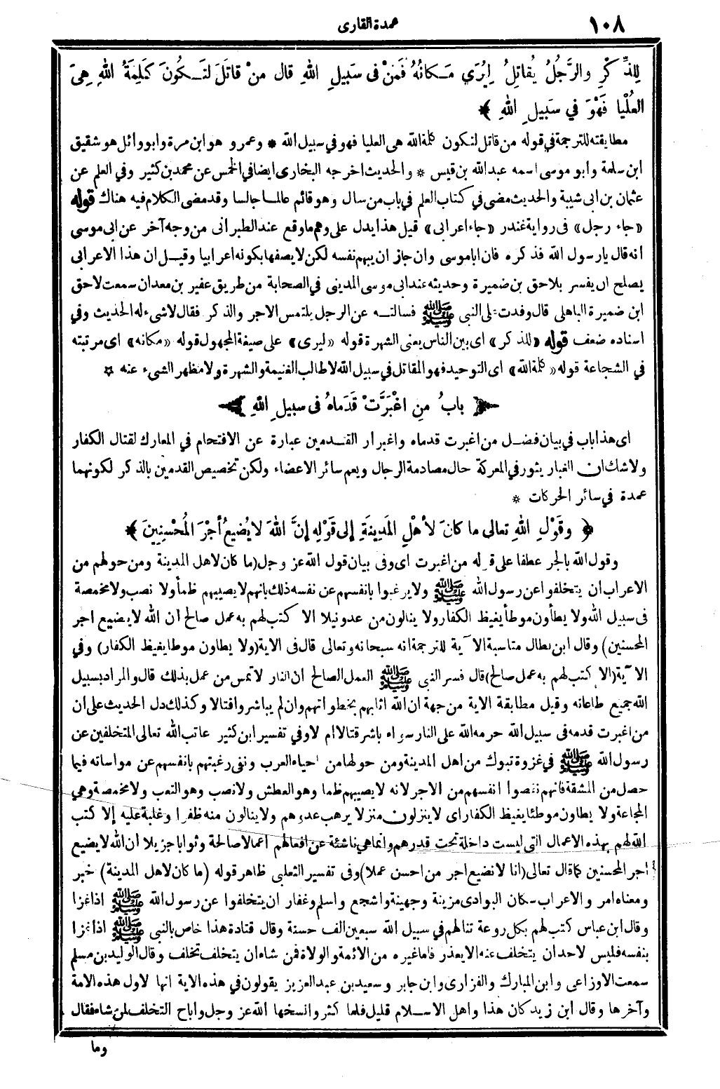 وقَوْلِ الله تَعَالَى {مَا كانَ لأهْلِ المَدِينَةِ} إِلَى قَوْلِهِ {إنَّ الله لاَ يُضِيعُ أجْرَ الْمُحْسِنينَ} (التَّوْبَة: 021) .