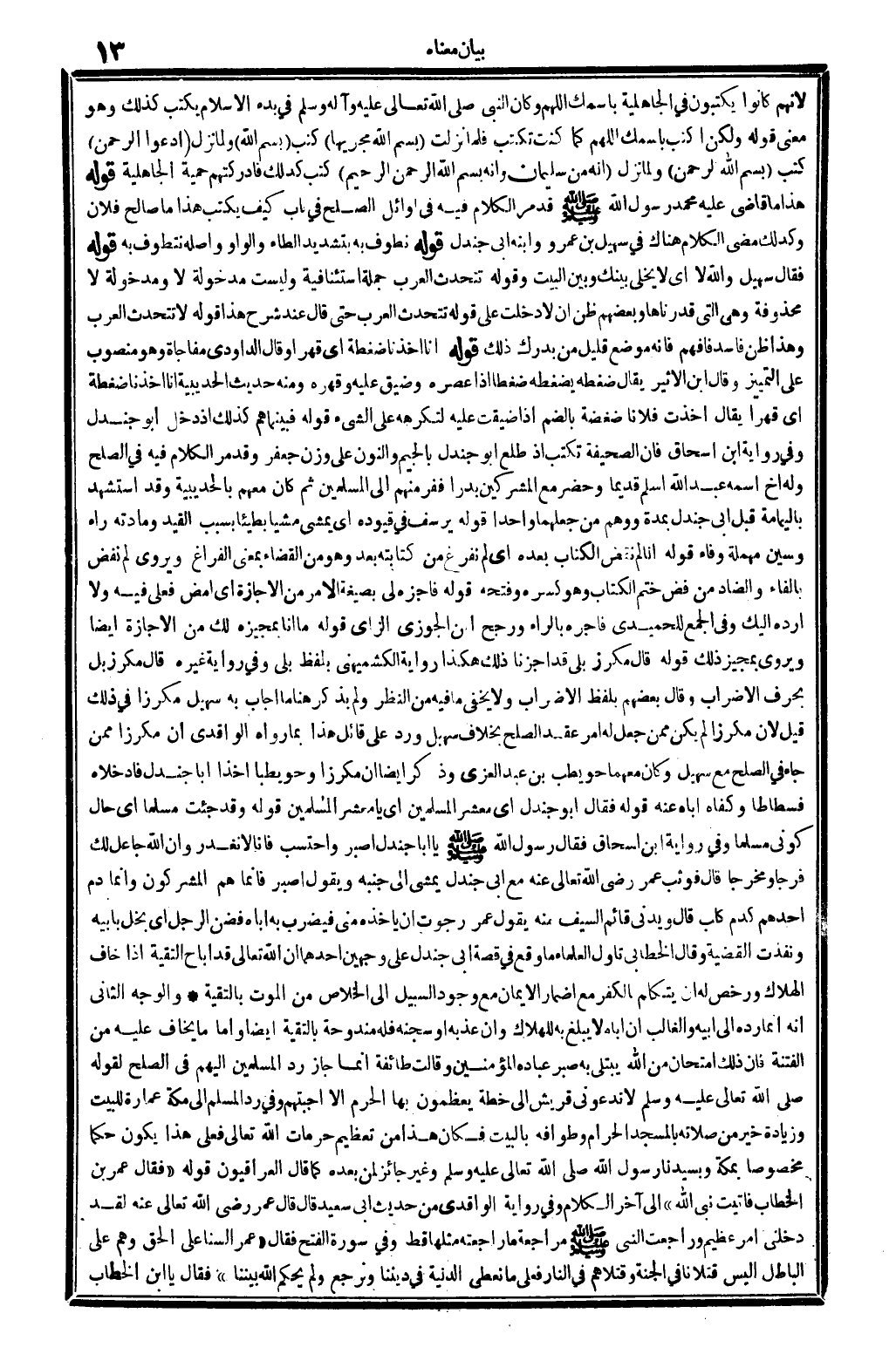 لأَنهم كَانُوا يَكْتُبُونَ فِي الْجَاهِلِيَّة: بِاسْمِك أللهم، وَكَانَ النَّبِي، صلى الله عَلَيْهِ وَسلم، فِي بَدْء الْإِسْلَام يكْتب كَذَلِك، وَهُوَ معنى قَوْله: (وَلَكِن أكتب بِاسْمِك اللَّهُمَّ) كَمَا كنت تكْتب، فَلَمَّا نزلت: {بِسم الله مجريها} (هود: 11) . كتب {بِسم الله} وَلما نزل: {ادعوا الرَّحْمَن} (الْإِسْرَاء: 71) . كتب {بِسم الله الرَّحْمَن الرَّحِيم} (النَّمْل: 03) . وَلما نزل {إِنَّه من سُلَيْمَان وَإنَّهُ بِسم الله الرَّحْمَن الرَّحِيم} (النَّمْل: 03) . كتب كَذَلِك فأدركتهم حمية الْجَاهِلِيَّة. قَوْله: (هَذَا مَا قاضى عَلَيْهِ مُحَمَّد رَسُول الله، صلى الله عَلَيْهِ وَسلم) وَقد مر الْكَلَام فِيهِ فِي أَوَائِل الصُّلْح فِي: بَاب كَيفَ يكْتب هَذَا مَا صَالح فلَان، وَكَذَلِكَ مضى الْكَلَام هُنَاكَ فِي سُهَيْل بن عَمْرو وَابْنه أبي جندل. قَوْله: (نطوف بِهِ) بتَشْديد الطَّاء وَالْوَاو وَأَصله نتطوف بِهِ. قَوْله: (فَقَالَ سُهَيْل (وَالله لَا) أَي: لَا يخلى بَيْنك وَبَين الْبَيْت. وَقَوله: (تَتَحَدَّث الْعَرَب) جملَة استثنافية وَلَيْسَت مدخولة: لَا، ومدخولة: لَا، محذوفة وَهِي الَّتِي قدرناها، وَبَعْضهمْ ظن أَن: لَا، دخلت على قَوْله: (تَتَحَدَّث الْعَرَب) حَتَّى قَالَ عِنْد شرح هَذَا: قَوْله: (لَا تَتَحَدَّث الْعَرَب) وَهَذَا ظن فَاسد، فَافْهَم، فَإِنَّهُ مَوضِع قَلِيل من يدْرك ذَلِك. قَوْله: (إِنَّا أَخذنَا ضغطة) أَي: قهرا. وَقَالَ الدَّاودِيّ: مفاجأة، وَهُوَ مَنْصُوب على التَّمْيِيز، وَقَالَ ابْن الْأَثِير: يُقَال: ضغطه يضغطه ضغطاً: إِذا عصره وضيق عَلَيْهِ وقهره، وَمِنْه حَدِيث الْحُدَيْبِيَة: (إِنَّا أَخذنَا ضغطة) أَي: قهرا، يُقَال: أخذت فلَانا ضغضة، بِالضَّمِّ: إِذا ضيقت عَلَيْهِ لتكرهه على الشَّيْء. قَوْله: (فَبَيْنَمَا هم كَذَلِك إِذْ دخل أَبُو جندل) وَفِي رِوَايَة ابْن إِسْحَاق: فَإِن الصَّحِيفَة تكْتب إِذْ طلع أَبُو جندل، بِالْجِيم وَالنُّون على وزن جَعْفَر، وَقد مر الْكَلَام فِيهِ فِي الصُّلْح وَله أَخ اسْمه: عبد الله أسلم قَدِيما وَحضر مَعَ الْمُشْركين بَدْرًا ففر مِنْهُم إِلَى الْمُسلمين، ثمَّ كَانَ مَعَهم بِالْحُدَيْبِية، وَقد اسْتشْهد بِالْيَمَامَةِ قبل أبي جندل بِمدَّة، وَوهم من جَعلهمَا وَاحِدًا. قَوْله: (يرسف فِي قيوده) أَي: يمشي مشياً بطيئاً بِسَبَب الْقَيْد، ومادته: رَاء وسين مُهْملَة وَفَاء. قَوْله: (إِنَّا لم نقض الْكتاب بعد) أَي: لم نفرغ من كِتَابَته بعد، وَهُوَ من: الْقَضَاء، بِمَعْنى: الْفَرَاغ، ويروى: لم نفض، بِالْفَاءِ وَالضَّاد من: فض ختم الْكتاب، وَهُوَ كَسره وفتحه. قَوْله: (فأجزه لي) بِصِيغَة الْأَمر من الْإِجَازَة أَي: أمض فعلي فِيهِ، وَلَا أرده إِلَيْك وَفِي (الْجمع) للحميدي: فأجزه، بالراء وَرجح ابْن الْجَوْزِيّ الزَّاي. قَوْله: (مَا أَنا بمجيزه لَك) من الْإِجَازَة أَيْضا ويروى: بمجيز ذَلِك. قَوْله: (قَالَ مكرز: بلَى قد أجزنا ذَلِك) هَكَذَا رِوَايَة الْكشميهني بِلَفْظ: بلَى، وَفِي رِوَايَة غَيره: قَالَ مكرز بل بِحرف الإضراب. وَقَالَ بَعضهم: وَلَا يخفى مَا فِيهِ من النّظر، وَلم يذكر هُنَا مَا أجَاب بِهِ سُهَيْل مكرزاً فِي ذَلِك، قيل: لِأَن مكرزاً لم يكن مِمَّن جعل لَهُ أَمر عقد الصُّلْح، بِخِلَاف سُهَيْل، ورد على قَائِل هَذَا بِمَا رَوَاهُ الْوَاقِدِيّ: أَن مكرزاً مِمَّن جَاءَ فِي الصُّلْح مَعَ سُهَيْل، وَكَانَ مَعَهُمَا حويطب بن عبد الْعُزَّى، وَذكر أَيْضا أَن مكرزاً وحويطباً أخذا أَبَا جندل فأدخلاه فسطاطاً وَكَفاهُ أَبَاهُ عَنهُ. قَوْله: (فَقَالَ أَبُو جندل: أَي معشر الْمُسلمين) أَي: يَا معشر الْمُسلمين. قَوْله: (وَقد جِئْت مُسلما) أَي: حَال كوني مُسلما، وَفِي رِوَايَة ابْن إِسْحَاق. فَقَالَ رَسُول الله، صلى الله عَلَيْهِ وَسلم: يَا أَبَا جندل: إصبر واحتسب فَأَنا لَا نغدر، وَإِن الله جَاعل لَك فرجا ومخرجاً. قَالَ: فَوَث