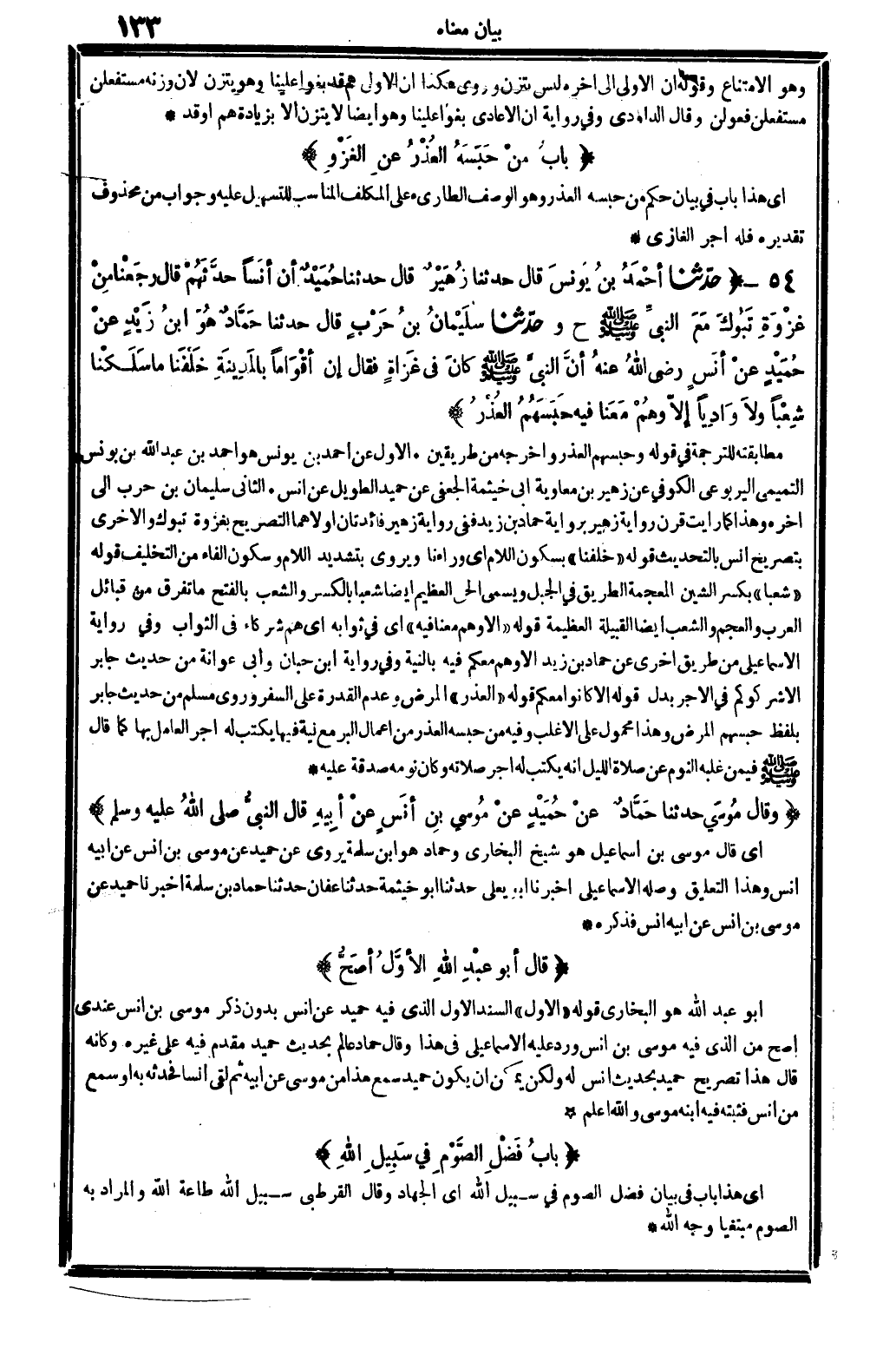 9382 - وحدَّثنا سُلَيْمَانُ بنُ حَرْبٍ قَالَ حدَّثنا حَمَّادٌ هُوَ ابنُ زَيْدٍ عنْ حُمَيْدٍ عنْ أنَسٍ رَضِي الله تَعَالَى عنهُ أنَّ النبيَّ صلى الله عَلَيْهِ وَسلم كانَ فِي غَزاةٍ فَقَالَ إنِّ أقْوَامَاً بالمَدِينَةِ خَلْفَنا مَا سَلَكْنَا شِعْبَاً ولاَ وادِياً إلاَّ وهُمْ مَعَنَا فِيهِ حبَسَهُمْ العُذْرُ.