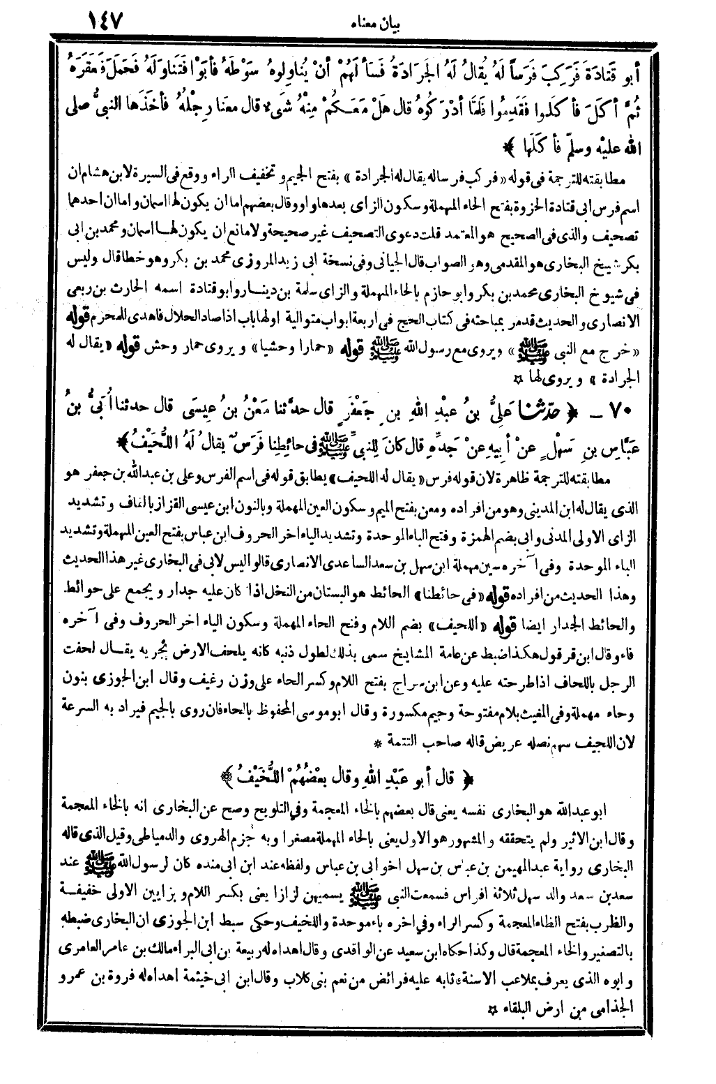5582 - حدَّثنا عَلِيُّ بنُ عبْدِ الله بنِ جَعْفَرٍ قَالَ حدَّثنا مَعْنُ بنُ عِيسَى قَالَ حدَّثنَا أُبَيُّ بنُ عَبَّاسِ بنِ سَهْلٍ عنْ أبِيهِ عنْ جَدِّهِ قَالَ كانَ لِلنِّبِيِّ صلى الله عَلَيْهِ وَسلم فِي حائِطِنَا فَرَسٌ يُقالُ لَهُ اللُّحَيْفُ.