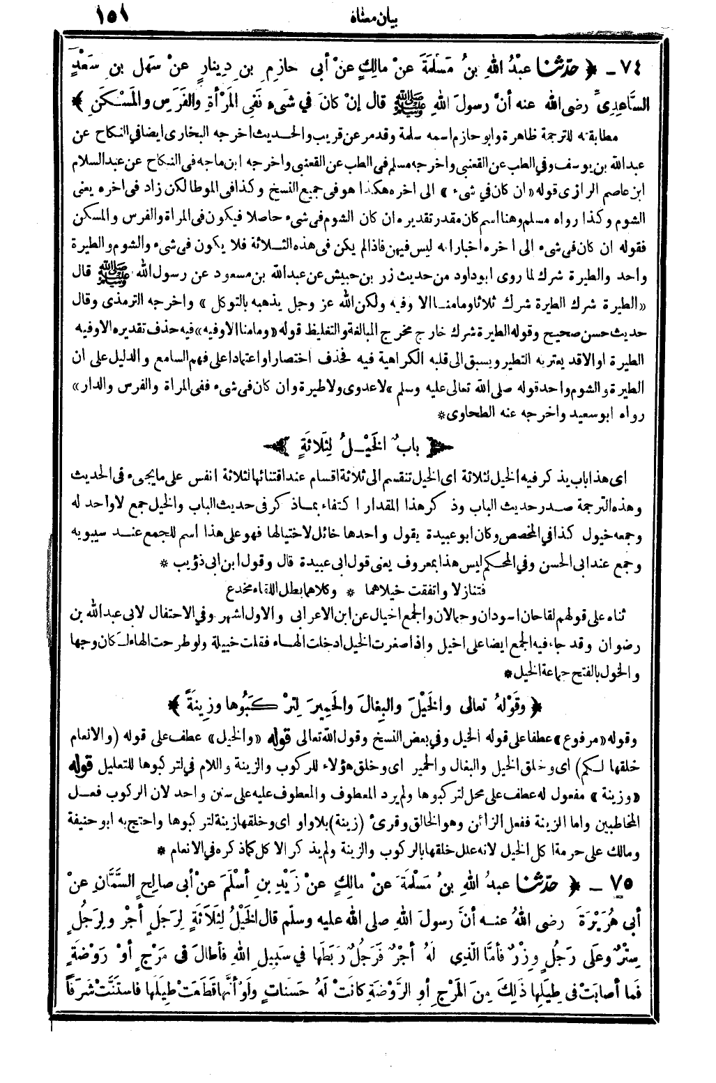 84 - (بابٌ الخَيْلِ لِثَلاثَةٍ)