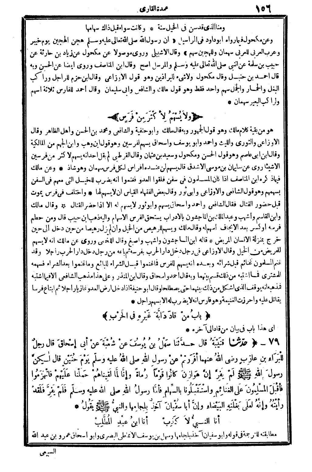 ولاَ يُسْهَمُ لأِكْثَرَ مِنْ فَرَسٍ