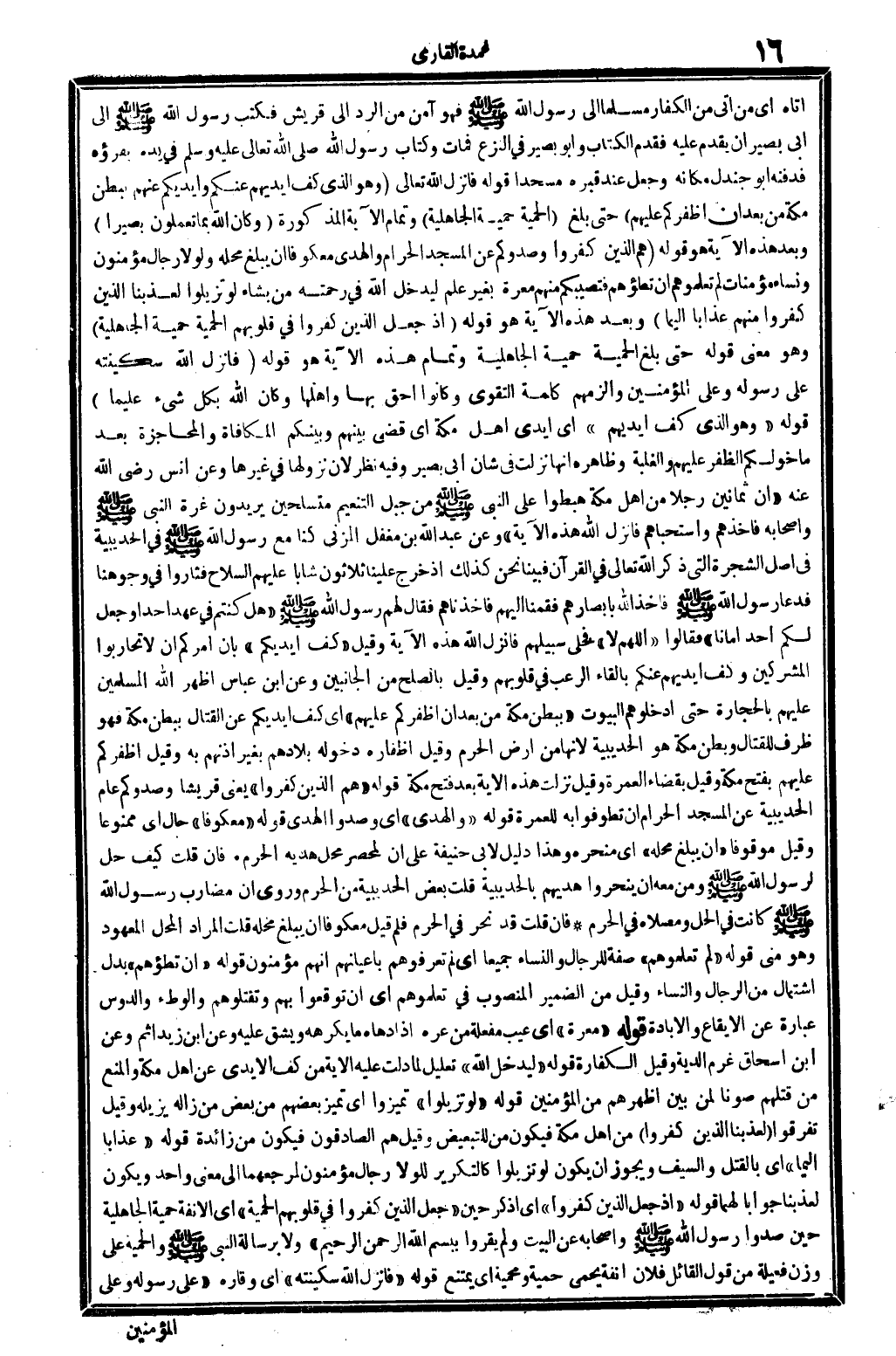 أَتَاهُ) أَي: من أَتَى الْكفَّار مُسلما إِلَى رَسُول الله، صلى الله عَلَيْهِ وَسلم (فَهُوَ آمن) من الرَّد إِلَى قُرَيْش، فَكتب رَسُول الله، صلى الله عَلَيْهِ وَسلم إِلَى أبي بَصِير أَن يقدم عَلَيْهِ، فَقدم الْكتاب وَأَبُو بَصِير فِي النزع، فَمَاتَ وَكتاب رَسُول الله، صلى الله عَلَيْهِ وَسلم، فِي يَده: يَقْرَؤُهُ، فدفنه أَبُو جندل مَكَانَهُ، وَجعل عِنْد قَبره مَسْجِدا. قَوْله: (فَأنْزل الله تَعَالَى {وَهُوَ الَّذِي كف أَيْديهم عَنْكُم وَأَيْدِيكُمْ عَنْهُم بِبَطن مَكَّة بعد أَن أَظْفَرَكُم عَلَيْهِم} (الْفَتْح: 42) . حَتَّى بلغ: {الحمية حمية الْجَاهِلِيَّة} (الْفَتْح: 62) . وَتَمام الْآيَة الْمَذْكُورَة {وَكَانَ الله بِمَا تَعْمَلُونَ بَصيرًا} (الْفَتْح: 42) . وَبعد هَذِه الْآيَة هُوَ قَوْله: {هم الَّذين كفرُوا وصدوكم عَن الْمَسْجِد الْحَرَام وَالْهَدْي معكوفاً أَن يبلغ مَحَله وَلَوْلَا رجال مُؤمنُونَ وَنسَاء مؤمنات لم تعلموهم أَن تطؤهم فتصيبكم مِنْهُم معرة بِغَيْر علم ليدْخل الله فِي رَحمته من يَشَاء لَو تزيلوا لعذبنا الَّذين كفرُوا مِنْهُم عذَابا أَلِيمًا} (الْفَتْح: 52) . وَبعد هَذِه الْآيَة هُوَ قَوْله: {إِذْ جعل الَّذين كفرُوا فِي قُلُوبهم الحمية حمية الْجَاهِلِيَّة} (الْفَتْح: 62) . وَهُوَ معنى قَوْله حَتَّى بلغ {الحمية حمية الْجَاهِلِيَّة} (الْفَتْح: 62) . وَتَمام هَذِه الْآيَة هُوَ قَوْله: {فَأنْزل الله سكينته على رَسُوله وعَلى الْمُؤمنِينَ وألزمهم كلمة التَّقْوَى وَكَانُوا أَحَق بهَا وَأَهْلهَا وَكَانَ الله بِكُل شَيْء عليماً} (الْفَتْح: 62) . قَوْله: {وَهُوَ الَّذِي كف أَيْديهم} أَي: أَيدي أهل مَكَّة، أَي: قضى بَينهم وَبَيْنكُم الْمُكَافَأَة والمحاجزة بعد مَا خولكم الظفر عَلَيْهِم وَالْغَلَبَة، وَظَاهره: أَنَّهَا نزلت فِي شَأْن أبي بَصِير، وَفِيه نظر، لِأَن نُزُولهَا فِي غَيرهَا، وَعَن أنس، رَضِي الله تَعَالَى عَنهُ: (أَن ثَمَانِينَ رجلا من أهل مَكَّة هَبَطُوا على النَّبِي صلى الله عَلَيْهِ وَسلم من جبل التَّنْعِيم متسلحين يُرِيدُونَ غرَّة النَّبِي صلى الله عَلَيْهِ وَسلم وَأَصْحَابه، فَأَخذهُم واستحباهم، فَأنْزل الله هَذِه الْآيَة. وَعَن عبد الله بن مُغفل الْمُزنِيّ: كُنَّا مَعَ رَسُول الله، صلى الله عَلَيْهِ وَسلم فِي الْحُدَيْبِيَة فِي أصل الشَّجَرَة الَّتِي ذكر الله تَعَالَى فِي الْقُرْآن، فَبينا نَحن كَذَلِك إِذْ خرج علينا ثَلَاثُونَ شَابًّا عَلَيْهِم السِّلَاح، فثاروا فِي وُجُوهنَا، فَدَعَا رَسُول الله، صلى الله عَلَيْهِ وَسلم فَأخذ الله بِأَبْصَارِهِمْ، فقمنا إِلَيْهِم فأخذناهم، فَقَالَ لَهُم رَسُول الله، صلى الله عَلَيْهِ وَسلم: (هَل كُنْتُم فِي عهد أحد؟ أَو جعل لكم أحد أَمَانًا؟) فَقَالُوا: (أللهم لَا) ، فخلى سبيلهم، فَأنْزل الله هَذِه الْآيَة. وَقيل: (كف أَيْدِيكُم) ، بِأَن أَمركُم أَن لَا تَحَارَبُوا الْمُشْركين، وكف أَيْديهم عَنْكُم بإلقاء الرعب فِي قُلُوبهم، وَقيل: بِالصُّلْحِ من الْجَانِبَيْنِ، وَعَن ابْن عَبَّاس: أظهر الله الْمُسلمين عَلَيْهِم بِالْحِجَارَةِ حَتَّى أدخلوهم الْبيُوت (بِبَطن مَكَّة من بعد أَن أَظْفَرَكُم عَلَيْهِم} (الْفَتْح: 42) . أَي: كف أَيْدِيكُم عَن الْقِتَال بِبَطن مَكَّة فَهُوَ ظرف لِلْقِتَالِ، وبطن مَكَّة هُوَ الْحُدَيْبِيَة لِأَنَّهَا من أَرض الْحرم، وَقيل: إظفاره دُخُوله بِلَادهمْ بِغَيْر إذْنهمْ بِهِ، وَقيل: أَظْفَرَكُم عَلَيْهِم بِفَتْح مَكَّة، وَقيل: بِقَضَاء الْعمرَة، وَقيل: نزلت هَذِه الْآيَة بعد فتح مَكَّة. قَوْله: {هم الَّذين كفرُوا} (الْفَتْح: 52) . يَعْنِي: قُريْشًا، وصدوكم عَام الْحُدَيْبِيَة عَن الْمَسْجِد الْحَرَام أَن تطوفوا بِهِ للْعُمْرَة. قَوْله: {وَالْهَدْي} (الْفَتْح: 52) . أَي: وصدوا الْهَدْي. قَوْله: {معكوفاً} (الْفَتْح: 52) . حَال أَي: مَمْنُوعًا: وَقيل: مَوْقُوفا {أَن يبلغ م