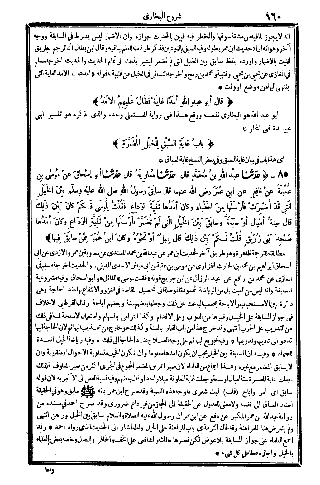 85 - (بابُ غايَةِ السَّبْقِ لِلْخَيْلِ المُضَمَّرَةِ)
