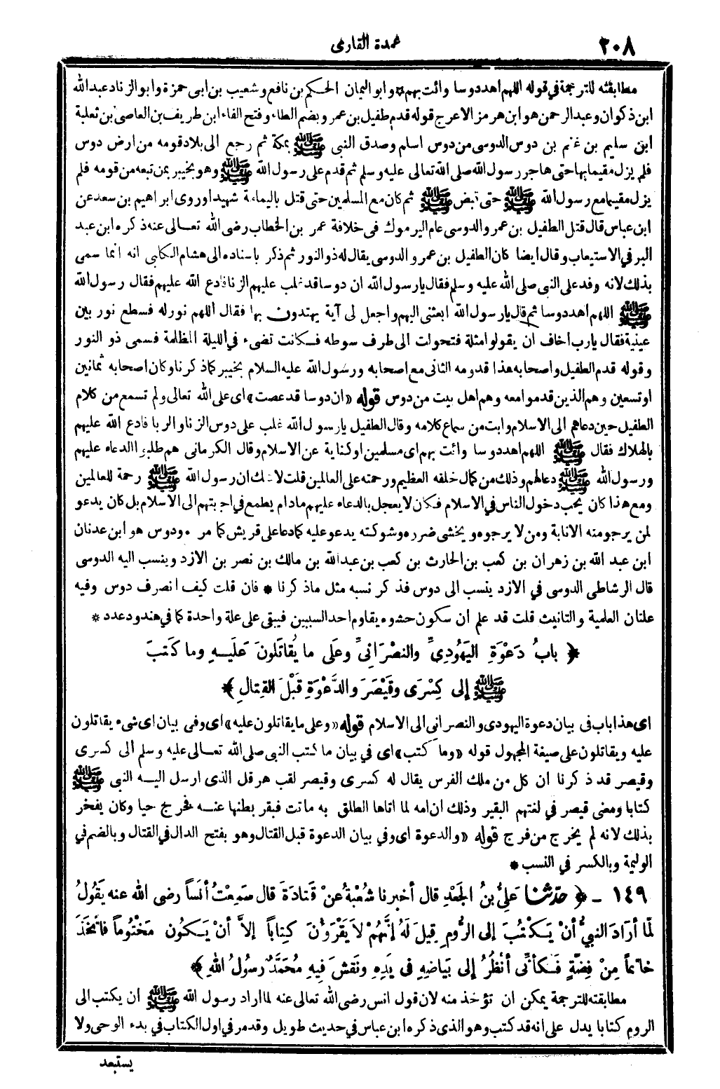 قَوْله: (قدم طفيل بن عمر) وبضم الطَّاء، وَفتح الْفَاء: ابْن طريف بن العَاصِي بن ثَعْلَبَة ابْن سليم بن غنم بن دوس الدوسي من دوس، أسلم وَصدق النَّبِي صلى الله عَلَيْهِ وَسلم بِمَكَّة ثمَّ رَجَعَ إِلَى بِلَاد قومه من أَرض دوس فَلم يزل مُقيما بهَا حَتَّى هَاجر رَسُول الله، صلى الله عَلَيْهِ وَسلم، ثمَّ قدم على رَسُول الله، صلى الله عَلَيْهِ وَسلم وَهُوَ بِخَيْبَر بِمن تبعه من قومه، فَلم يزل مُقيما مَعَ رَسُول الله، صلى الله عَلَيْهِ وَسلم حَتَّى قبض صلى الله عَلَيْهِ وَسلم، ثمَّ كَانَ مَعَ الْمُسلمين حَتَّى قتل بِالْيَمَامَةِ شَهِيدا، وروى إِبْرَاهِيم بن سعد عَن ابْن عَبَّاس. قَالَ: قتل الطُّفَيْل بن عَمْرو الدوسي عَام اليرموك فِي خلَافَة عمر بن الْخطاب، رَضِي الله تَعَالَى عَنهُ، ذكره ابْن عبد الْبر فِي (الِاسْتِيعَاب) وَقَالَ أَيْضا: كَانَ الطُّفَيْل بن عَمْرو الدوسي يُقَال لَهُ: ذُو النُّور ثمَّ ذكر بِإِسْنَادِهِ إِلَى هِشَام الْكَلْبِيّ: أَنه إِنَّمَا سمي بذلك لِأَنَّهُ وَفد على النَّبِي صلى الله عَلَيْهِ وَسلم، فَقَالَ: يَا رَسُول الله {إِن دوساً قد غلب عَلَيْهِم الزِّنَا، فَادع الله عَلَيْهِم. فَقَالَ رَسُول الله، صلى الله عَلَيْهِ وَسلم: أللهم اهد دوساً، ثمَّ قَالَ: يَا رَسُول الله ابعثني إِلَيْهِم وَاجعَل لي آيَة يَهْتَدُونَ بهَا، فَقَالَ: أللهم نوّر لَهُ، فسطع نور بَين عَيْنَيْهِ، فَقَالَ: يَا رب أَخَاف أَن يَقُولُوا، مثلَة فتحولت إِلَى طرف سَوْطه، فَكَانَت تضيء فِي اللَّيْلَة الْمظْلمَة، فَسُمي: ذُو النُّور. وَقَوله: قدم الطُّفَيْل وَأَصْحَابه، هَذَا قدومه الثَّانِي مَعَ أَصْحَابه، وَرَسُول الله، صلى الله عَلَيْهِ وَسلم، بِخَيْبَر كَمَا ذكرنَا، وَكَانَ أَصْحَابه ثَمَانِينَ أَو تسعين، وهم الَّذين قدمُوا مَعَه، وهم أهل بَيت من دوس. قَوْله: (إِن دوساً قد عَصَتْ) أَي: على الله تَعَالَى، وَلم تسمع من كَلَام الطُّفَيْل حِين دعاهم إِلَى الْإِسْلَام وأبت من سَماع كَلَامه، وَقَالَ الطُّفَيْل: يَا رَسُول الله} غلب على دوس الزِّنَا والربا، فَادع الله عَلَيْهِم بِالْهَلَاكِ، فَقَالَ صلى الله عَلَيْهِ وَسلم: أللهم إهد دوساً وائت بهم، أَي: مُسلمين أَو كِنَايَة عَن الْإِسْلَام. وَقَالَ الْكرْمَانِي: هم طلبُوا الدُّعَاء عَلَيْهِم وَرَسُول الله، صلى الله عَلَيْهِ وَسلم دَعَا لَهُم، وَذَلِكَ من كَمَال خلقه الْعَظِيم وَرَحمته على الْعَالمين. قلت: لَا شكّ أَن رَسُول الله، صلى الله عَلَيْهِ وَسلم رَحْمَة للْعَالمين وَمَعَ هَذَا، كَانَ يحب دُخُول النَّاس فِي الْإِسْلَام، فَكَانَ لَا يعجل بِالدُّعَاءِ عَلَيْهِم مَا دَامَ يطْمع فِي إجابتهم إِلَى الْإِسْلَام، بل كَانَ يَدْعُو لمن يَرْجُو مِنْهُ الْإِنَابَة، وَمن لَا يرجوه، ويخشى ضَرَره وشوكته يَدْعُو عَلَيْهِ كَمَا دَعَا على قُرَيْش كَمَا مر. ودوس هُوَ ابْن عدنان ابْن عبد الله بن زهران بن كَعْب بن الْحَارِث بن كَعْب بن عبد الله بن مَالك بن نصر بن الأزد، وينسب إِلَيْهِ الدوسي قَالَ الرشاطي الدوسي فِي الأزد: ينْسب إِلَى دوس فَذكر نسبه مثل مَا ذكرنَا. فَإِن قلت: كَيفَ انْصَرف دوس وَفِيه عِلَّتَانِ: العلمية والتأنيث؟ قلت: قد علم أَن سُكُون حشوه يُقَاوم أحد السببين فَيبقى على عِلّة وَاحِدَة كَمَا فِي هِنْد وَعدد.