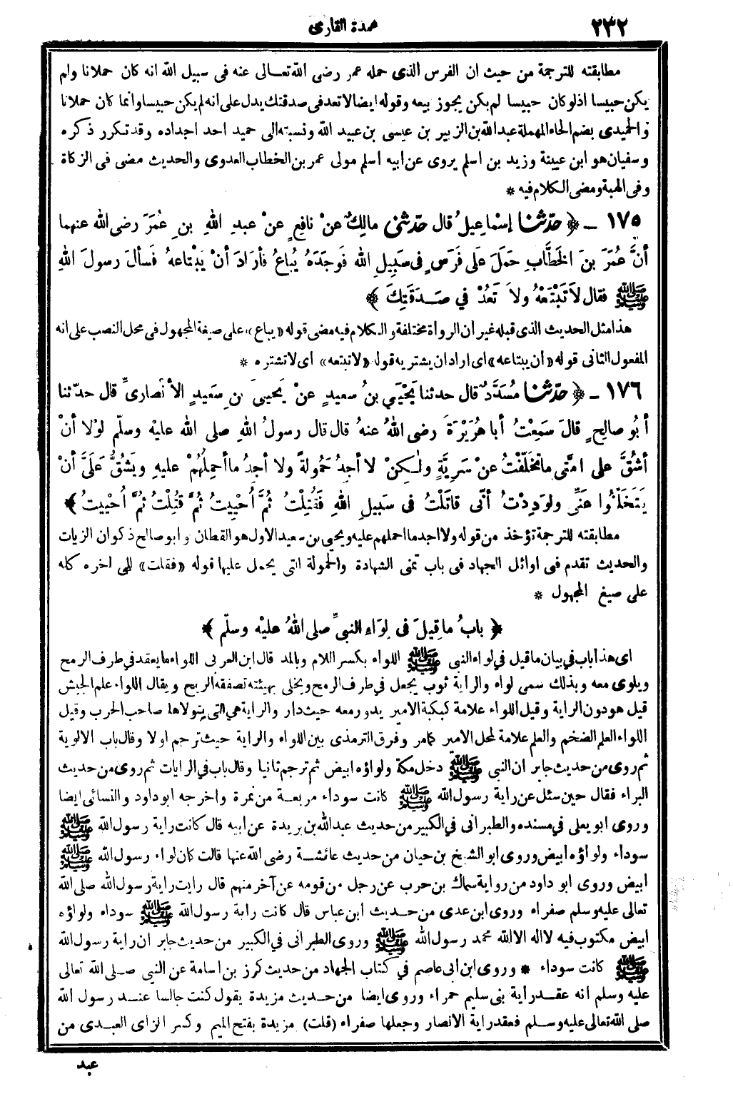 1792 - حدَّثنا إسْمَاعِيلُ قَالَ حدَّثني مالِكٌ عنْ عبْدِ الله بنِ عُمَرَ رَضِي الله تَعَالَى عنهُما أَن عُمَرَ بنَ الخَطَّابِ حَمَلَ علَى فَرَسٍ فِي سَبِيلِ الله فوَجَدَهُ يُبَاعُ فأرَادَ أنْ يَبْتَاعَهُ فَسألَ رسولَ الله صلى الله عَلَيْهِ وَسلم فَقَالَ لاَ تَبْتَعْهُ ولاَ تَعُدْ فِي صَدَقَتِكَ..