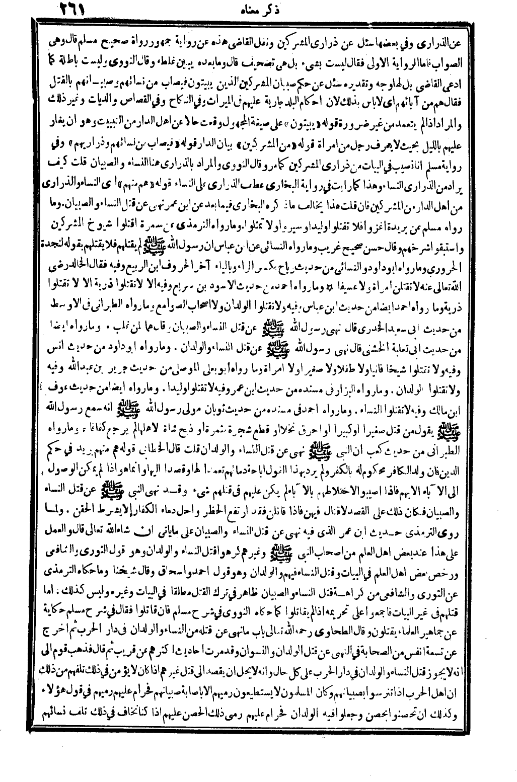 فَإِن قلت: هَذَا يُخَالف مَا ذكره البُخَارِيّ فِيمَا بعد عَن ابْن عمر: نهى عَن قتل النِّسَاء وَالصبيان، وَمَا رَوَاهُ مُسلم عَن بُرَيْدَة: اغزوا فَلَا تقتلُوا وليداً، وسيروا وَلَا تمثلوا. وَمَا رَوَاهُ التِّرْمِذِيّ عَن سَمُرَة: اقْتُلُوا شُيُوخ الْمُشْركين واستبقوا شرخهم. وَقَالَ: حسن صَحِيح غَرِيب، وَمَا رَوَاهُ النَّسَائِيّ عَن ابْن عَبَّاس: أَن رَسُول الله، صلى الله عَلَيْهِ وَسلم لم يقتلهُمْ فَلَا يقتلهُمْ بقوله لنجدة الحروري، وَمَا رَوَاهُ أَبُو دَاوُد وَالنَّسَائِيّ من حَدِيث ريَاح بِكَسْر الرَّاء وبالياء آخر الْحُرُوف: ابْن الرّبيع، وَفِيه: فَقَالَ الخالد، رَضِي الله تَعَالَى عَنهُ، لَا تقتلن امْرَأَة وَلَا عسيفاً. وَمَا رَوَاهُ أَحْمد من حَدِيث الْأسود بن سريع، وَفِيه ألاَ لَا تقتلُوا ذُرِّيَّة أَلا لَا تقتلُوا ذُرِّيَّة، وَمَا رَوَاهُ أَحْمد أَيْضا من حَدِيث ابْن عَبَّاس، وَفِيه: وَلَا تقتلُوا الْولدَان وَلَا أَصْحَاب الصوامع، وَمَا رَوَاهُ الطَّبَرَانِيّ فِي (الْأَوْسَط) من حَدِيث أبي سعيد الْخُدْرِيّ، قَالَ: نهى رَسُول الله، صلى الله عَلَيْهِ وَسلم عَن قتل النِّسَاء وَالصبيان، وَقَالَ: هما لمن غلب. وَمَا رَوَاهُ أَيْضا من حَدِيث أبي ثَعْلَبَة الْخُشَنِي، قَالَ: نهى رَسُول الله، صلى الله عَلَيْهِ وَسلم عَن قتل النِّسَاء والولدان. وَمَا رَوَاهُ أَبُو دَاوُد من حَدِيث أنس وَفِيه: لَا تقتلُوا شَيخا فانياً وَلَا طفْلا وَلَا صَغِيرا وَلَا امْرَأَة، وَمَا رَوَاهُ أَبُو يعلى الْموصِلِي من حَدِيث جرير بن عبد الله، وَفِيه: وَلَا تقتلُوا الْولدَان. وَمَا رَوَاهُ الْبَزَّار فِي (مُسْنده) من حَدِيث ابْن عمر، وَفِيه: لَا تقتلُوا وليداً. وَمَا رَوَاهُ أَيْضا من حَدِيث عَوْف ابْن مَالك، وَفِيه: لَا تقتلُوا النِّسَاء. وَمَا رَوَاهُ أَحْمد فِي (مُسْنده) من حَدِيث ثَوْبَان مولى رَسُول الله، صلى الله عَلَيْهِ وَسلم أَنه سمع رَسُول الله، صلى الله عَلَيْهِ وَسلم يَقُول: من قتل صَغِيرا أَو كَبِيرا أَو أحرق نخلا أَو قطع شَجَرَة مثمرة أَو ذبح شَاة لأَهْلهَا لم يرجع كفافاً. وَمَا رَوَاهُ الطَّبَرَانِيّ من حَدِيث كَعْب: أَن النَّبِي صلى الله عَلَيْهِ وَسلم نهى عَن قتل النِّسَاء والولدان.