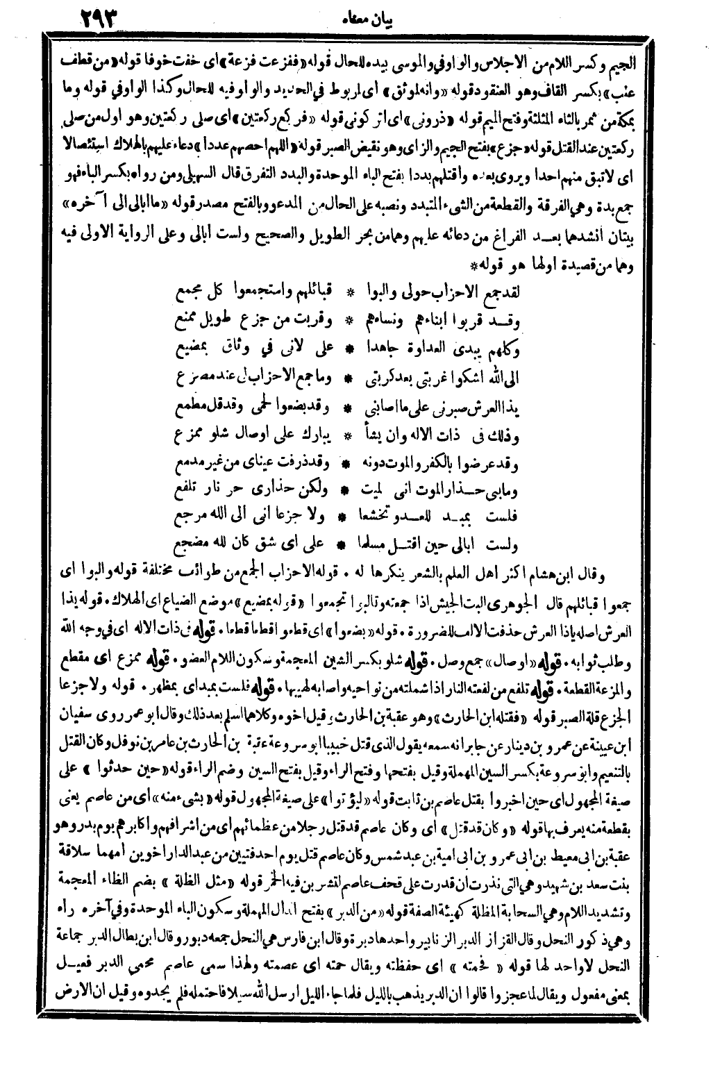 (لقد جمع الْأَحْزَاب حَولي وألبوا ... قبائلهم واستجمعوا كل مجمعِ)