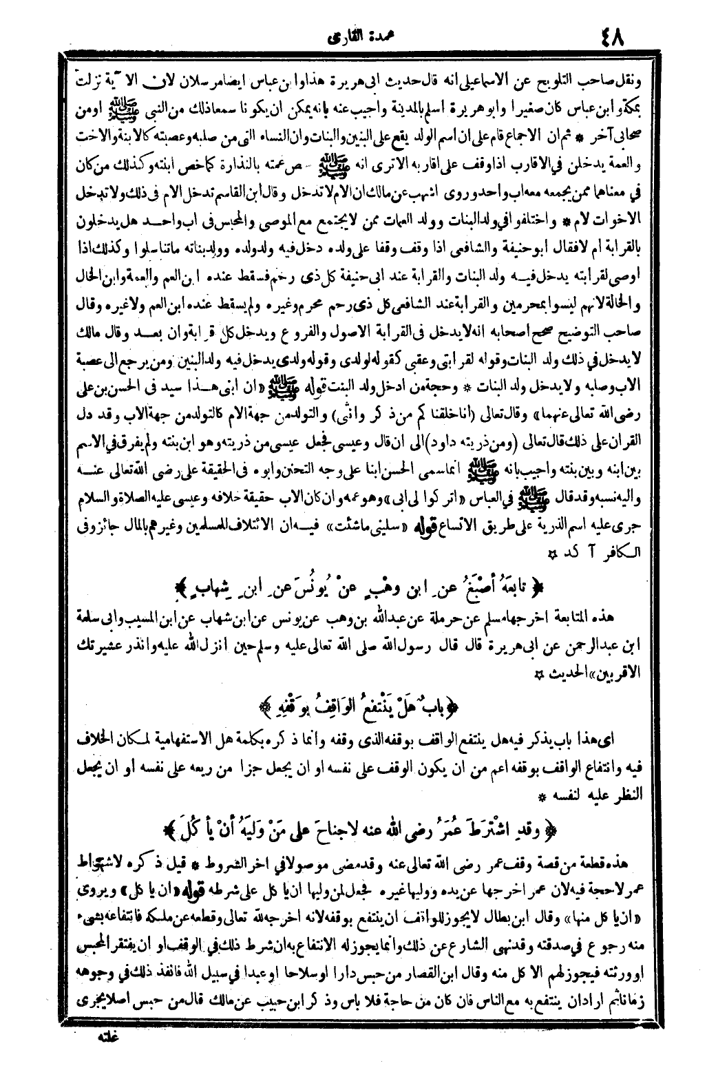 أَي: هَذَا بَاب يذكر فِيهِ: هَل ينْتَفع الْوَاقِف بوقفه الَّذِي وَقفه؟ وَإِنَّمَا ذكره بِكَلِمَة: هَل، الاستفهامية لمَكَان الْخلاف فِيهِ، وانتفاع الْوَاقِف بوقفه أَعم من أَن يكون الْوَقْف على نَفسه أَو أَن يَجْعَل جُزْءا كم ريعه على نَفسه، أَو أَن يَجْعَل النّظر عَلَيْهِ لنَفسِهِ.
