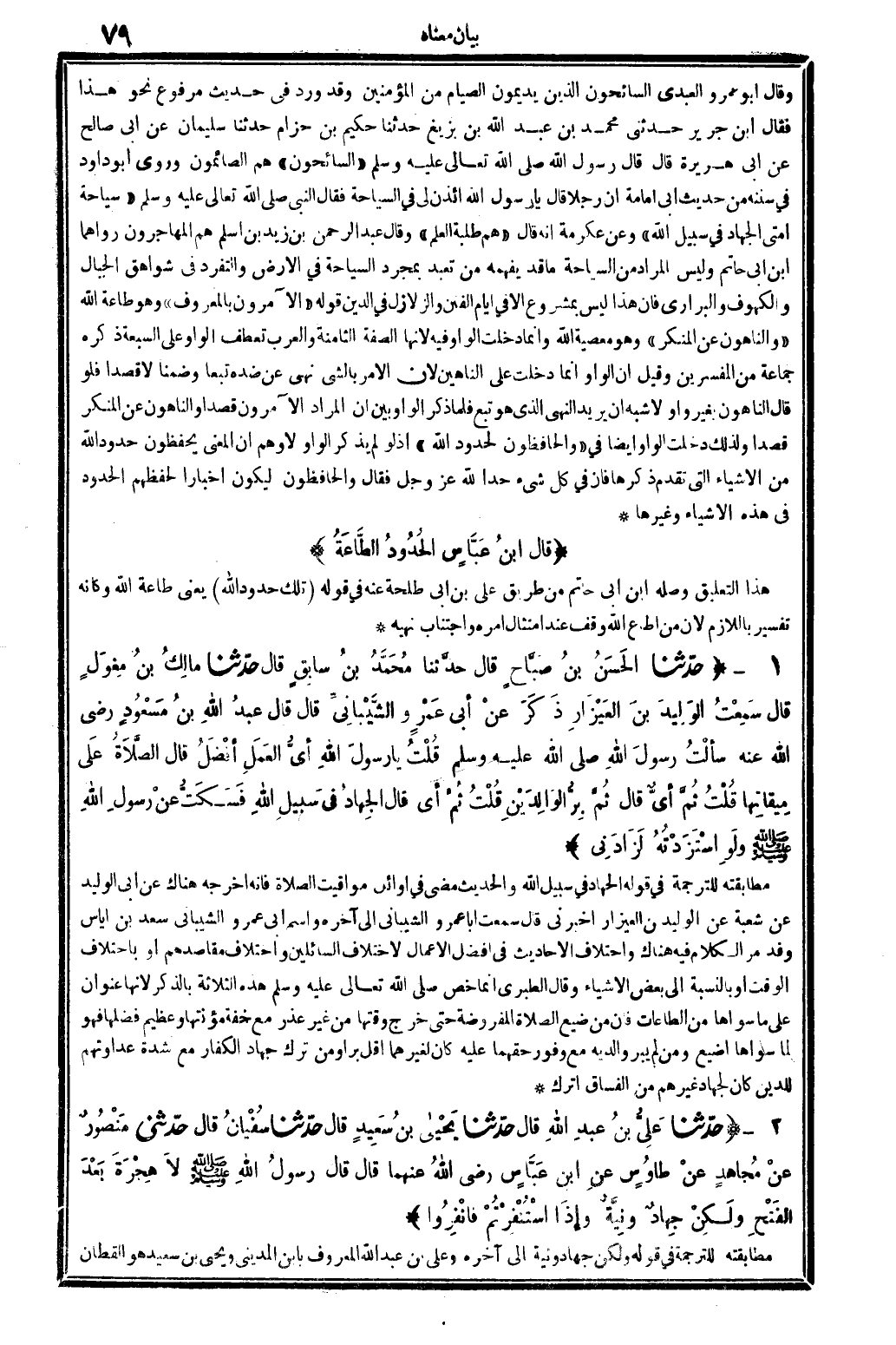 قَالَ ابنُ عَبَّاسٍ الحُدُودُ الطَّاعَةُ