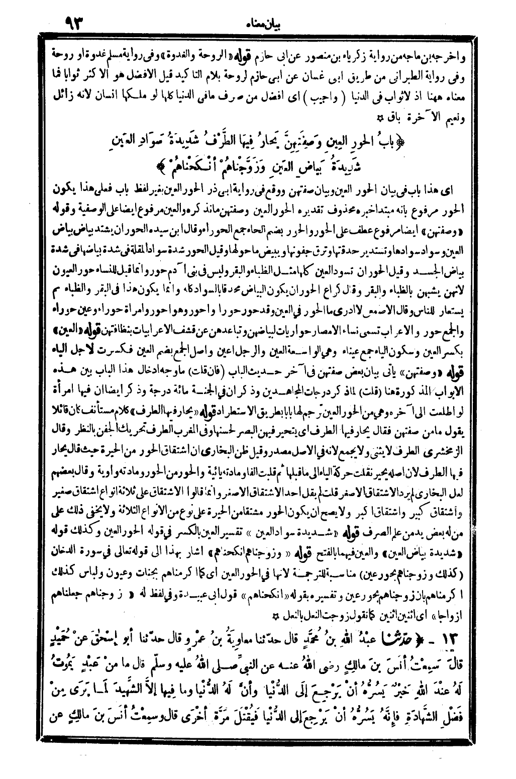 6 - (بابُ الحُورِ العِينِ وصِفَتِهِنَّ يَحَارُ فِيهَا الطَّرْفُ شَدِيدَةُ سَوادِ العَيْنِ شَدِيدَةُ بَياضِ العَيْنِ وزَوَّجْنَاهُمْ أنْكَحْنَاهُمْ)