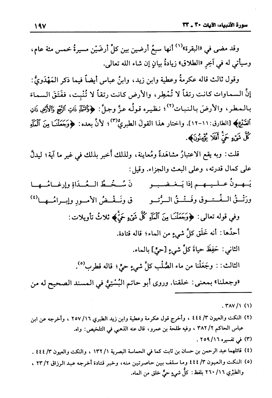 فِي هَذِهِ الْآيَةِ، وَهَذَا الْمَعْنَى فِي كِتَابِهِ الَّذِي سَمَّاهُ بِالِاقْتِصَادِ، إِلْحَادٌ عِنْدِي، وَتَطَرُّقٌ خَبِيثٌ إِلَى تَشْوِيشِ عَقِيدَةِ الْمُسْلِمِينَ فِي خَتْمِ مُحَمَّدٍ صَلَّى اللَّهُ عَلَيْهِ وَسَلَّمَ النُّبُوَّةَ، فَالْحَذَرَ الْحَذَرَ مِنْهُ! وَاللَّهُ الْهَادِي بِرَحْمَتِهِ. قُلْتُ: وَقَدْ رُوِيَ عَنِ النَّبِيِّ صَلَّى اللَّهُ عَلَيْهِ وَسَلَّمَ أَنَّهُ قَالَ: (لَا نُبُوَّةَ بَعْدِي إِلَّا مَا شَاءَ اللَّهُ). قَالَ أَبُو عُمَرَ: يَعْنِي الرُّؤْيَا- وَاللَّهُ أَعْلَمُ- الَّتِي هِيَ جُزْءٌ مِنْهَا، كَمَا قَالَ عَلَيْهِ السَّلَامُ: (لَيْسَ يَبْقَى بَعْدِي مِنَ النُّبُوَّةِ إِلَّا الرُّؤْيَا الصَّالِحَةُ). وَقَرَأَ ابْنُ مَسْعُودٍ" مِنْ رِجَالِكُمْ وَلَكِنْ نَبِيًّا خَتَمَ النَّبِيِّينَ". قَالَ الرُّمَّانِيُّ: خُتِمَ بِهِ عَلَيْهِ الصَّلَاةُ وَالسَّلَامُ الِاسْتِصْلَاحُ، فَمَنْ لَمْ يَصْلُحْ بِهِ فَمَيْئُوسٌ مِنْ صَلَاحِهِ. قُلْتُ: وَمِنْ هَذَا الْمَعْنَى قَوْلُهُ عَلَيْهِ السَّلَامُ: (بُعِثْتُ لِأُتَمِّمَ مَكَارِمَ الْأَخْلَاقِ). وَفِي صَحِيحِ مُسْلِمٍ عَنْ جَابِرٍ قَالَ قَالَ رَسُولُ اللَّهِ صَلَّى اللَّهُ عَلَيْهِ وَسَلَّمَ: (مَثَلِي وَمَثَلُ الْأَنْبِيَاءِ كَمَثَلِ رَجُلٍ بَنَى دَارًا فَأَتَمَّهَا وَأَكْمَلَهَا إِلَّا مَوْضِعَ لَبِنَةٍ فَجَعَلَ النَّاسُ يَدْخُلُونَهَا وَيَتَعَجَّبُونَ. مِنْهَا وَيَقُولُونَ لَوْلَا مَوْضِعُ اللَّبِنَةِ! - قَالَ رَسُولُ اللَّهِ صَلَّى اللَّهُ عَلَيْهِ وَسَلَّمَ- فَأَنَا مَوْضِعُ اللَّبِنَةِ جِئْتُ فَخَتَمْتُ الْأَنْبِيَاءَ (. وَنَحْوُهُ عَنْ أَبِي هُرَيْرَةَ، غَيْرَ أَنَّهُ قال: فأنا اللبنة وأنا خاتم النبيين).