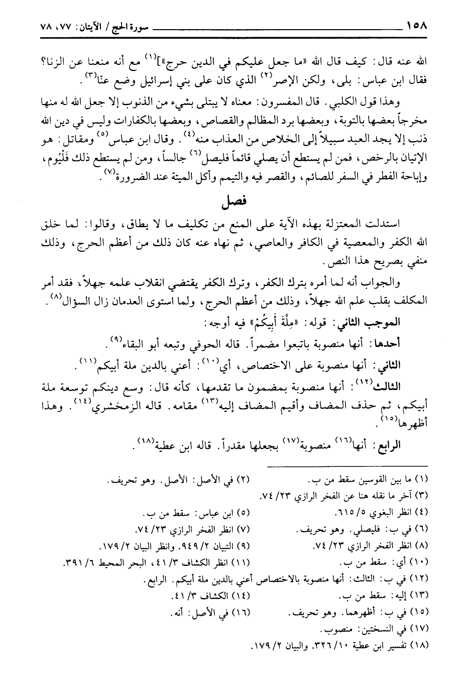الموجب الثاني: قوله: «مِلَّةَ أَبِيكُمْ» فيه أوجه: