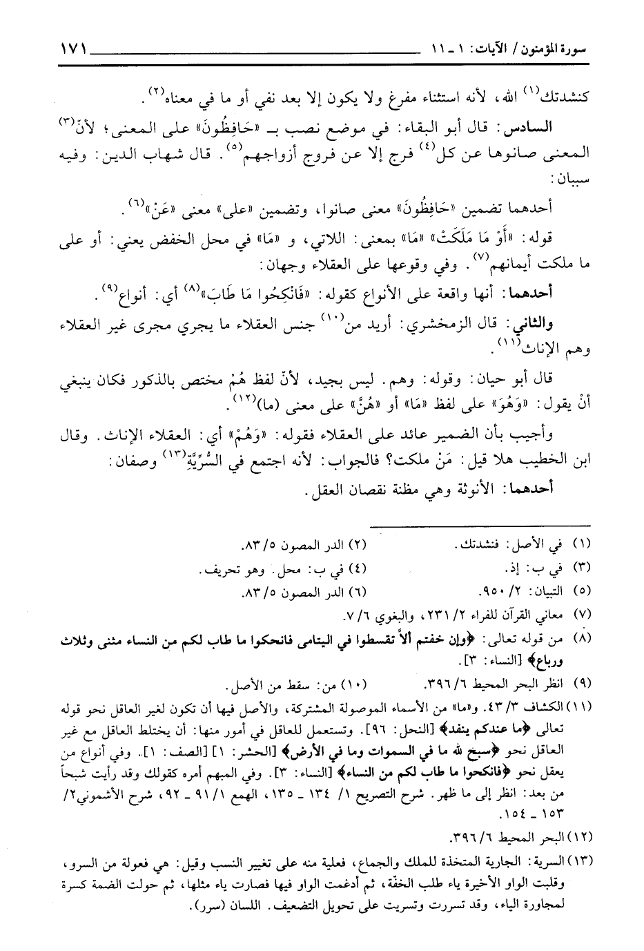 السادس: قال أبو البقاء: في موضع نصب ب «حَافِظُونَ» على المعنى؛ لأنّ المعنى صانوها عن كل فرج إلا عن فروج أزواجهم. قال شهاب الدين: وفيه سببان: