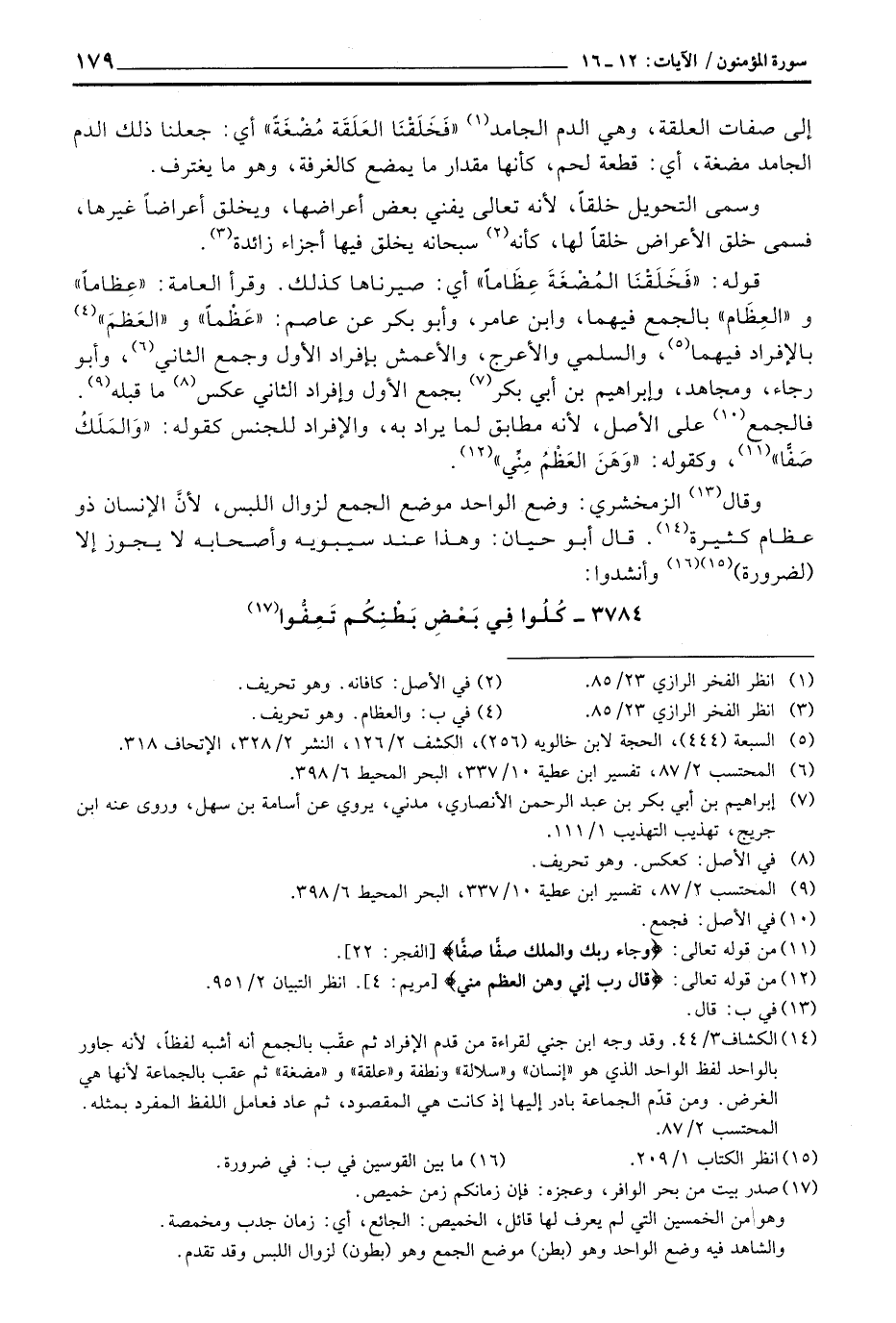 وقال الزمخشري: وضع الواحد موضع الجمع لزوال اللبس، لأنَّ الإنسان ذو عظام كثيرة. قال أبو حيان: وهذا عند سيبويه وأصحابه لا يجوز إلا (لضرورة) وأنشدوا: