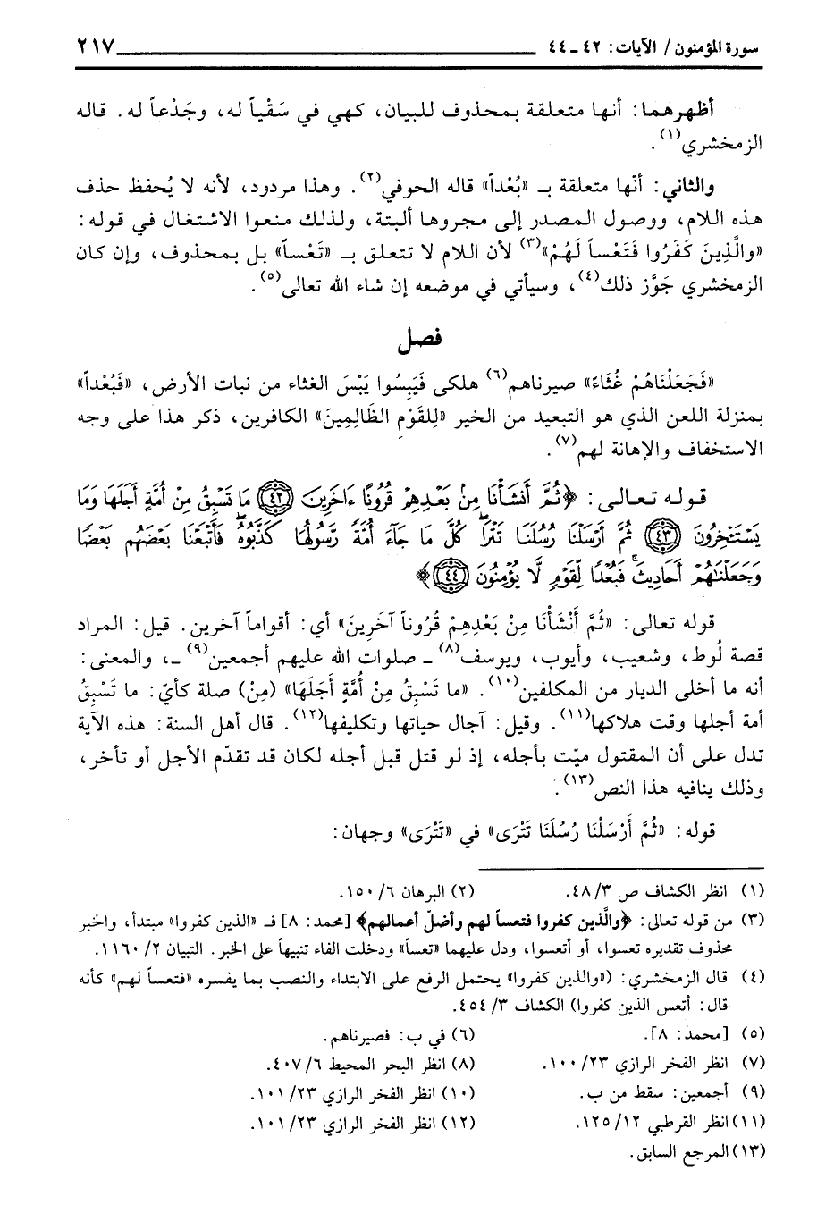 قوله تعالى: {ثُمَّ أَنشَأْنَا مِن بَعْدِهِمْ قُرُوناً آخَرِينَ} أي: أقواماً آخرين. قيل: المراد قصة لُوط، وشعيب، وأيوب، ويوسف - صلوات الله عليهم أجمعين -، والمعنى: أنه ما أخلى الديار من المكلفين. {مَا تَسْبِقُ مِنْ أُمَّةٍ أَجَلَهَا} (مِنْ) صلة كأيّ: ما تَسْبِقُ أمة أجلها وقت هلاكها. وقيل: آجال حياتها وتكليفها. قال أهل السنة: هذه الآية تدل على أن المقتول ميّت بأجله، إذ لو قتل قبل أجله لكان قد تقدّم الأجل أو تأخر، وذلك ينافيه هذا النص.