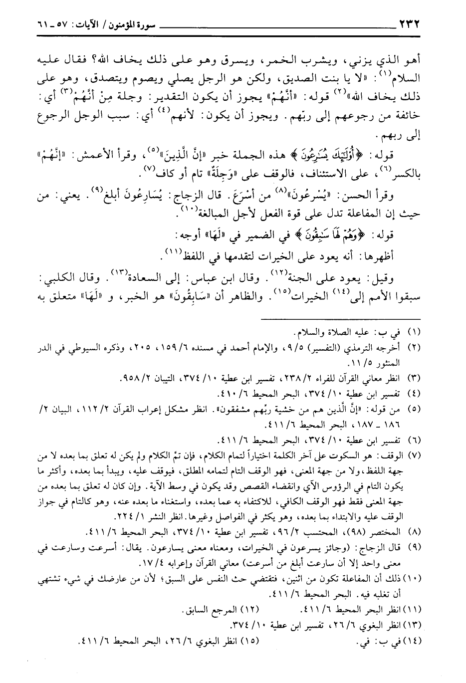 أهو الذي يزني، ويشرب الخمر، ويسرق وهو على ذلك يخاف الله؟ فقال عليه السلام:» لا يا بنت الصديق، ولكن هو الرجل يصلي ويصوم ويتصدق، وهو على ذلك يخاف الله «قوله:» أنَّهُمْ «يجوز أن يكون التقدير: وجلة مِنْ أنَّهُمْ أي: خائفة من رجوعهم إلى ربّهم. ويجوز أن يكون: لأنهم أي: سبب الوجل الرجوع إلى ربهم.